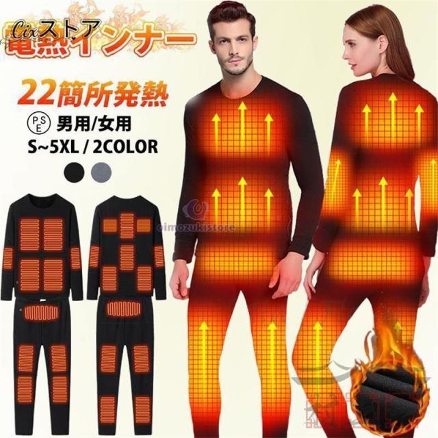 電熱インナーウェア 22箇所発熱 ヒーター22個 上下セット 電熱トップス 長袖 パンツ ヒーター付き 防寒着 速暖 電熱ズボン メンズ レディース 2024最新版