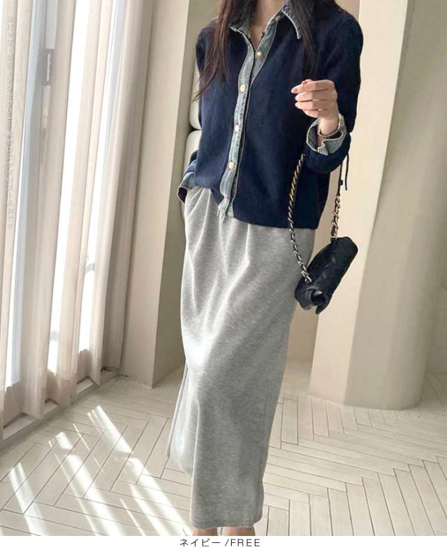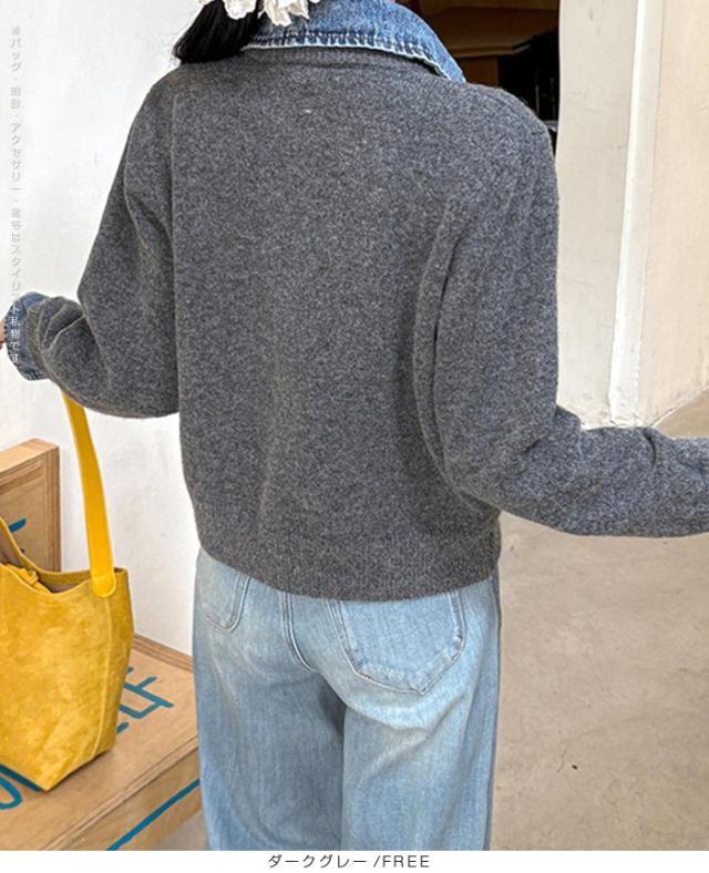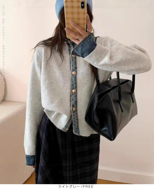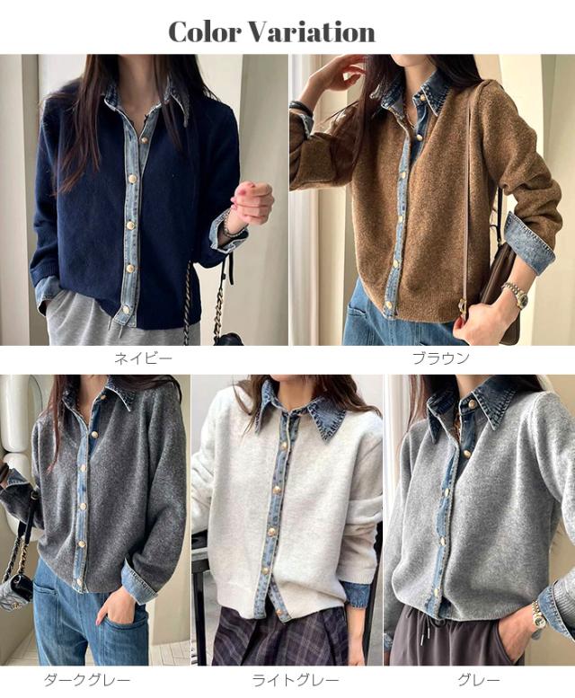 【フェイクレイヤードカーディガン】 デニムとニットを組み合わせたレイヤード風デザインが目を惹く、 異素材切替カーディガン。 襟元や前立てに施されたデニム素材が、 重ね着しているようなこなれ感を演出します。 ゆったりとしたサイズ感でリラックスして着用でき、 厚手ニットで秋冬〜春先まで大活躍。 シンプルなコーデに羽織るだけで、大人カジュアルな抜け感スタイルが完成します。 《商品ポイント》 デニムとニットの異素材MIXがこなれ感たっぷり 重ね着風デザインで1枚で完成されたスタイリングに ゴールドボタンが程よいアクセントに 厚手でも軽く、ふんわりとした肌触りで快適な着心地 ゆったりサイズ×ジャスト丈で体型カバー&バランス◎ 《デザイン・シルエット》 シャツ×ニットをドッキングしたフェイクレイヤード仕様 抜け感のあるゆったりフォルム+厚手でも重すぎないバランス設計 首元は襟付きできちんと感も演出 金ボタンで大人っぽい上品さをプラス 羽織りとしても、前を閉じてトップス風にも着用可能 《コーディネート提案》 デニムパンツと合わせて上下デニムのセットアップ風コーデに スラックスと合わせてキレイめ通勤スタイルにも◎ タイトスカートやマーメイドスカートと合わせれば甘辛ミックスに キャミワンピの上から羽織ってレイヤードスタイルも楽しめる スニーカーやブーツを合わせれば、 こなれた大人カジュアルの完成 《サイズ・カラーバリエーション》 サイズ展開:FREE カラー展開:ライトグレー/グレー/ダークグレー/ネイビー/ブラウン 《素材・機能性》 素材:ニット部分/ポリエステル100%、切替部分/デニム綿100% 裏地:なし 透け感:なし 伸縮性:ニット部分あり 生地の厚さ:厚手であたたか シーズン:秋〜春先までロングシーズン対応 |