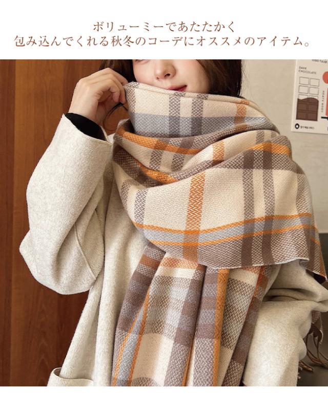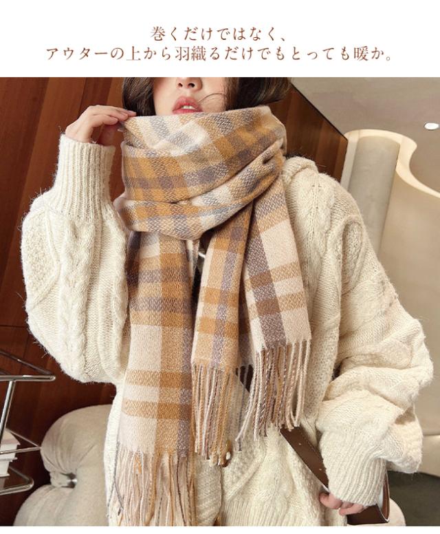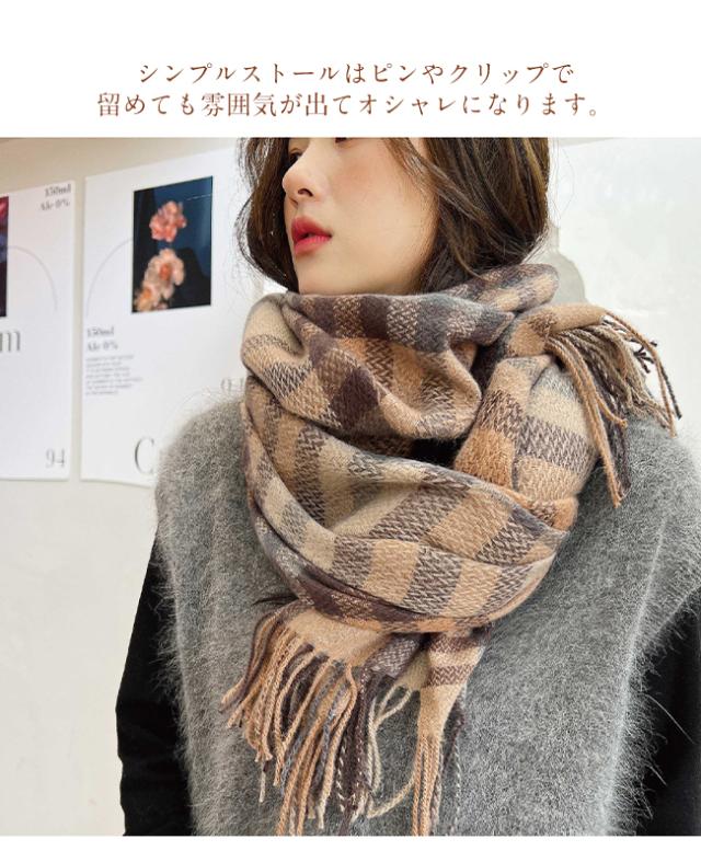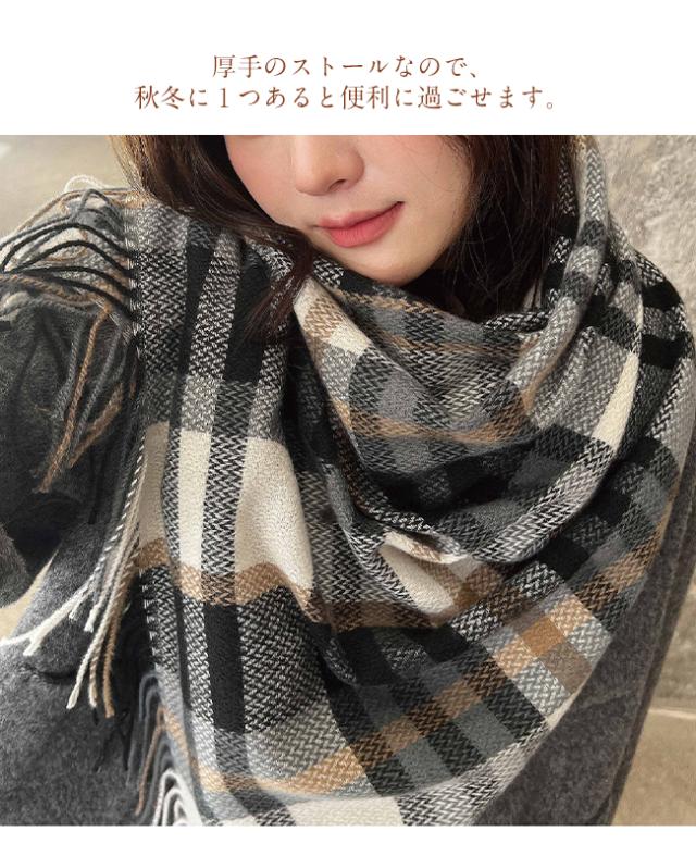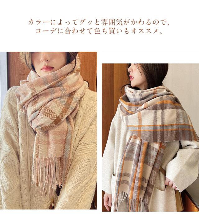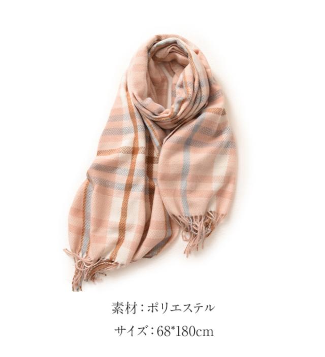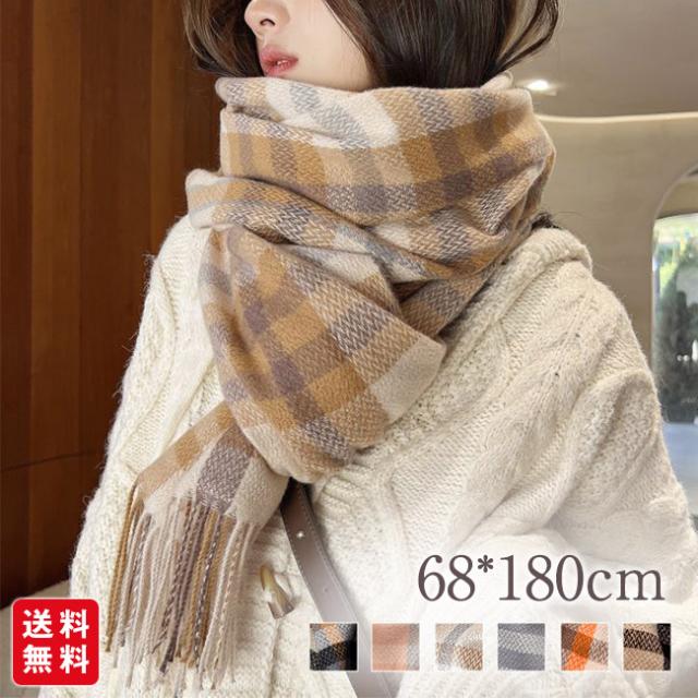 マフラー チェック ストール ショール レディース メンズ 68*180cm ふわふわ 中学生 高校生 女子 子供 大判 太フリンジ 無地 ロング丈 秋冬 かわいい プレゼント