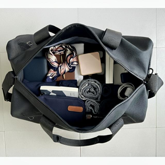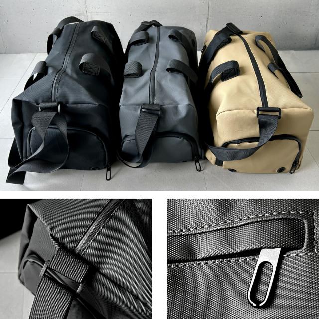 ロールボストンやドラムバッグのようなスポーティなシルエットで、タウンユースに最適な多機能トラベルバッグ。