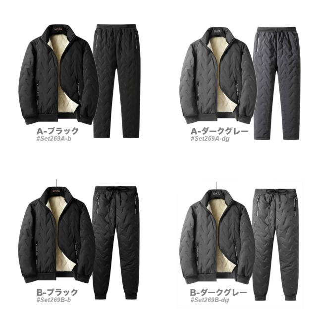 中綿入り+モコモコ裏ボア仕様のあったかセットアップ。 パンツの裾がAタイプはナチュラル裾タイプ、Bタイプは裾ゴムタイプとなっております。 表地は防風+撥水生地を採用し、水汚れに強く多少の雨や雪の日でも安心。 両サイドには収納に便利なジッパーポケット付き。 形態安定の型押し加工を施しており、 動きやすくデザイン性もプラス◎ 部屋着や普段着の他、スポーツやアウトドアウェアとしてアクティブシーンにオススメです。