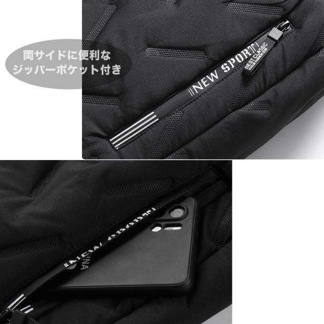 両サイドには収納に便利なジッパーポケット付き。 形態安定の型押し加工を施しており、