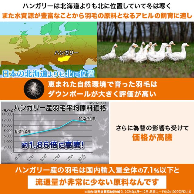 ハンガリー産の羽毛は国内輸入量全体の7.1%以下と、