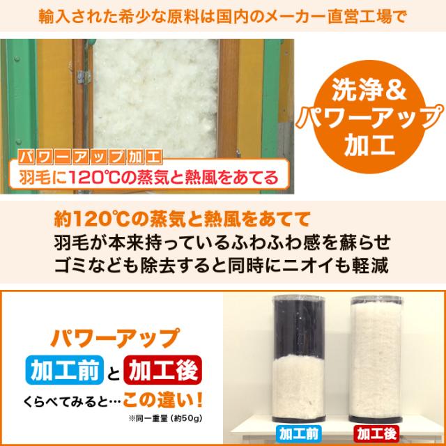 約120度の蒸気と熱風をあてて羽毛が本来持っているふわふわ感を蘇らせ