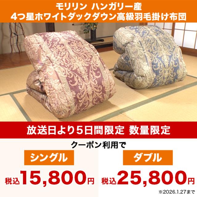 【1月27日までクーポン利用で64200円引き!】モリリン ハンガリー産4つ星ホワイトダックダウン高級羽毛掛け布団 ダブル ニッポンめしあがれ テレビ朝日 テレ朝通販 ロッピング