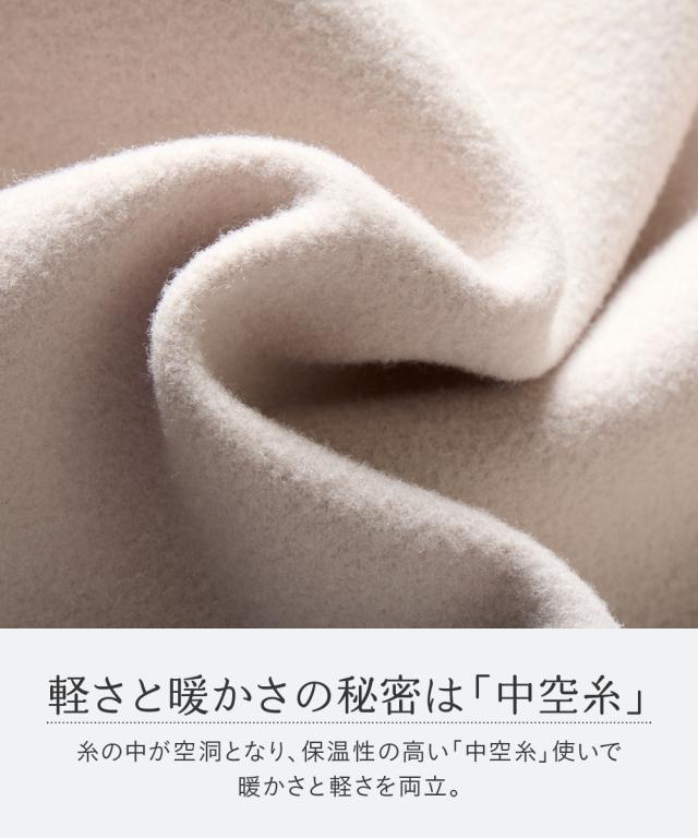 軽くて空気を含みやすい糸で軽さと暖かさを両立し快適な着心地に。