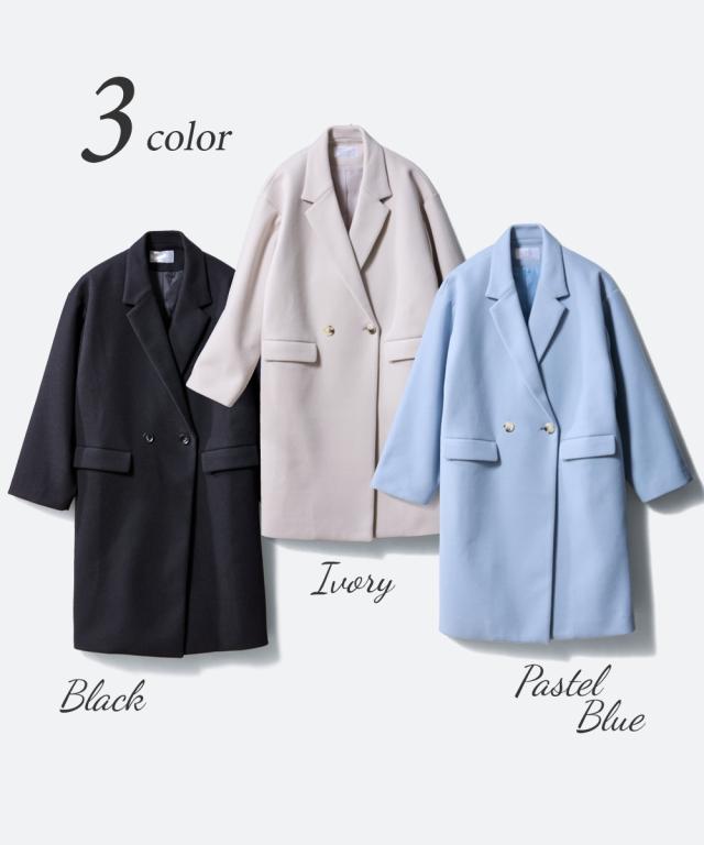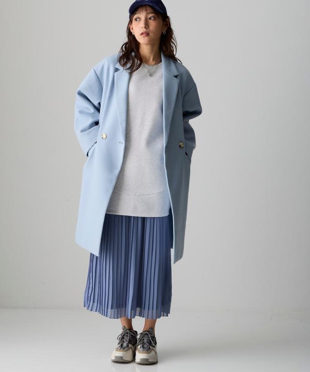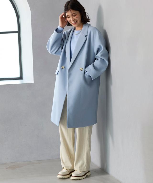 ダブルブレストのテーラードコート。
