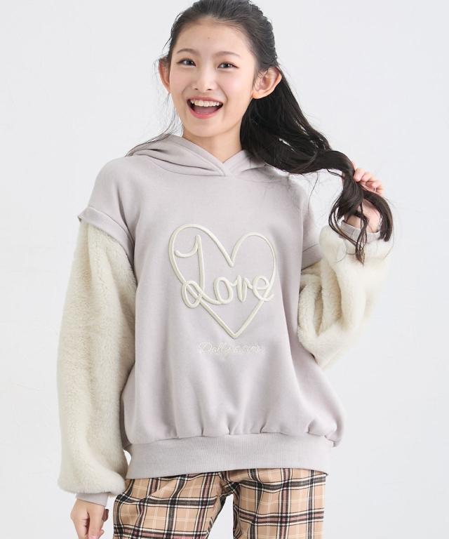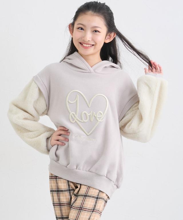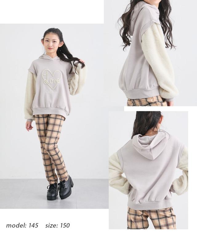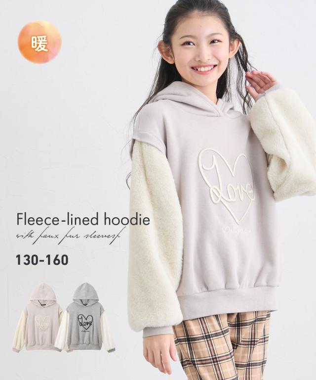 トレーナー 子供服 キッズ 裏起毛 袖フェイクファー切替フード付き 女の子 冬 トップス スウェット プルオーバー | 身長130cm | ニッセン nissen