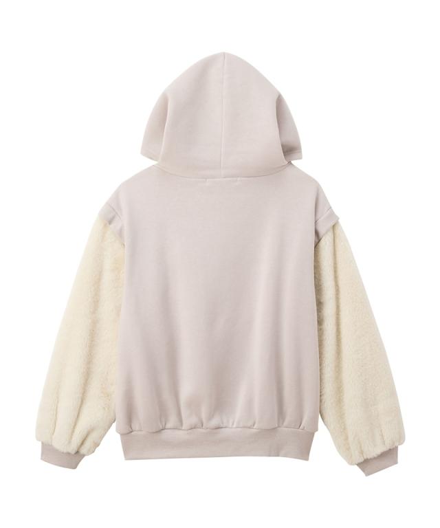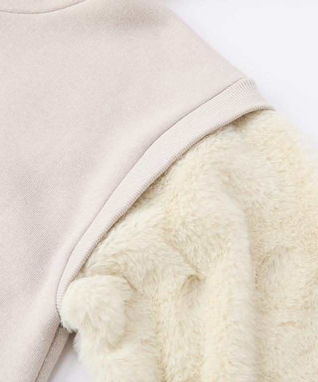 ・ふわふわのフェイクファー素材を袖に切り替えることで、トレンド感と暖かさを両立。
