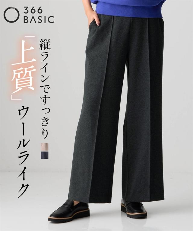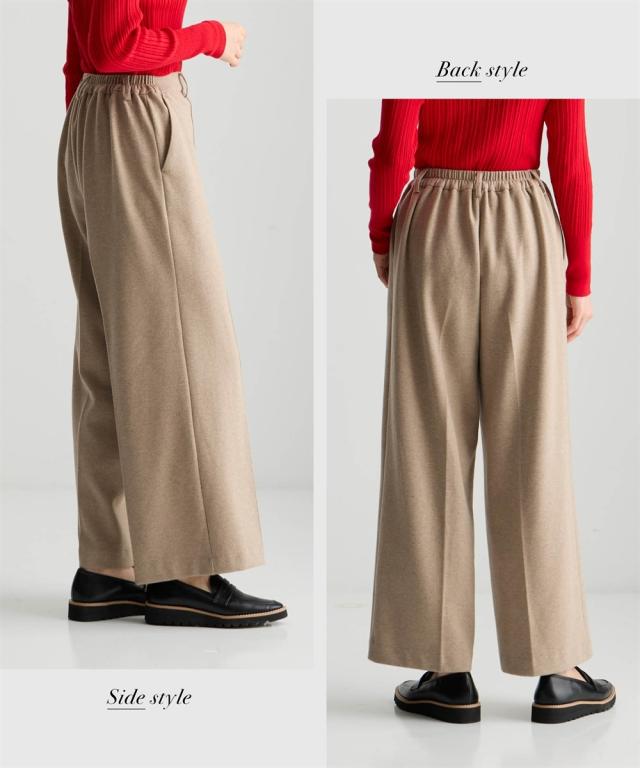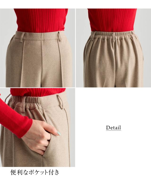 ワイドパンツ レディース 洗濯機で洗える綿混ウール見え カットソー やわらかピンタックマニッシュワイド パンツ 冬 ゆったり | L/LL/3L | ニッセン nissen