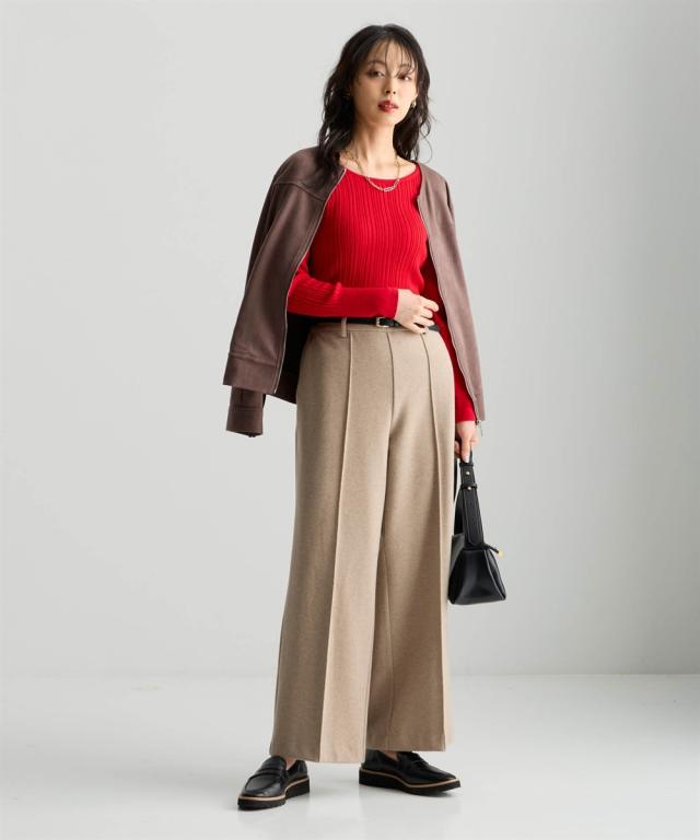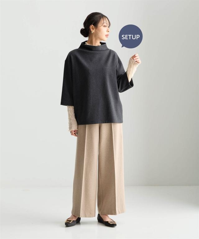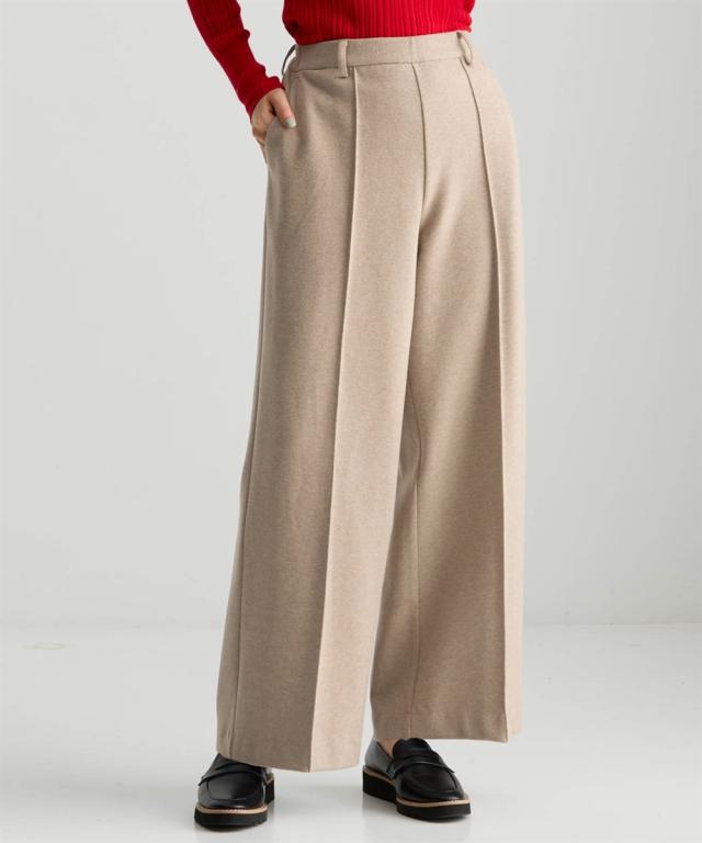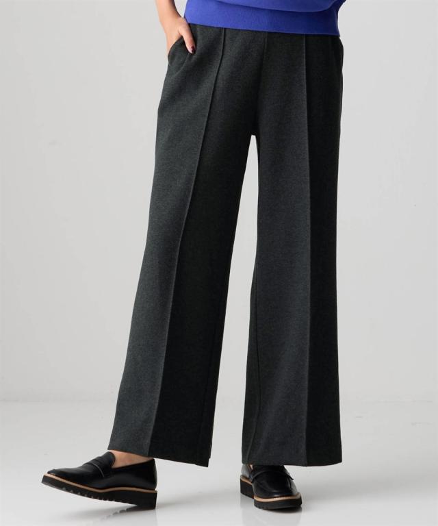 洗濯機で洗える綿混ウール見えカットソーやわらかピンタックマニッシュワイドパンツ