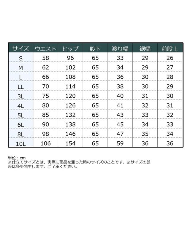 品質=綿64%・ポリエステル36% 透け感:なし 伸縮性:ややあり 生地の厚み:普通 光沢感:なし 裏地:なし ポケット:あり(両脇) ウエスト:後ゴム入 季節:春・秋・冬向き シルエット:ゆったり 原産国:中国製 備考:洗濯機OK ネット使用 単位:cm ※仕立てサイズとは、実際に商品を測った時のサイズのことです。※サイズの誤差は多少発生します。ご了承ください。