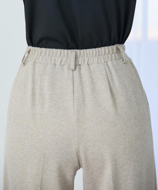 裾の控えを多めに取っているので、股下の長さを伸ばして履くことができる画期的パンツ!ウール調に見えるあったか素材なのにきれい見えするので、ONOFF関係なく着用頂けます。