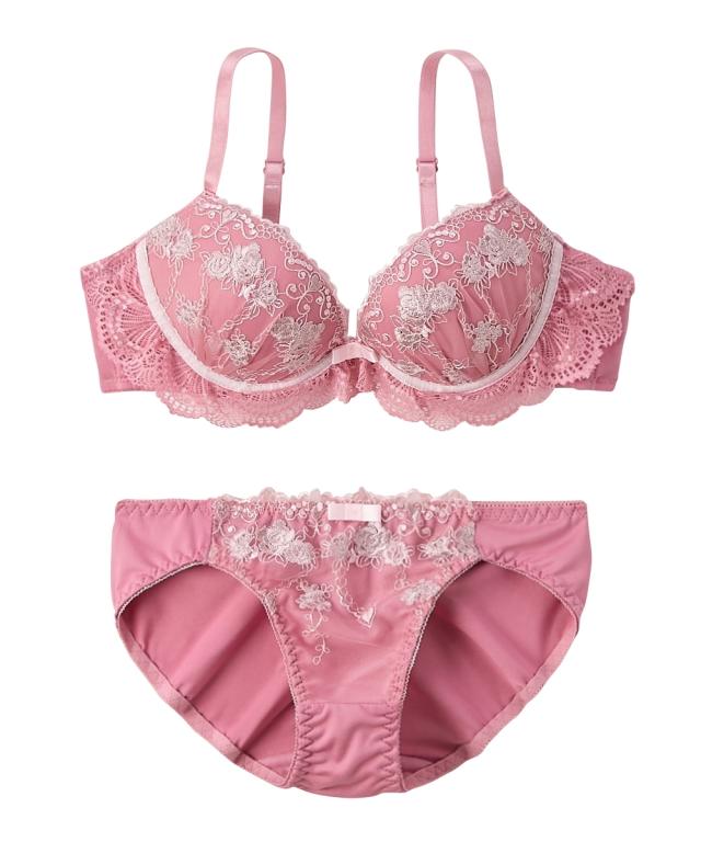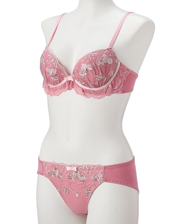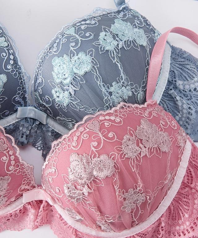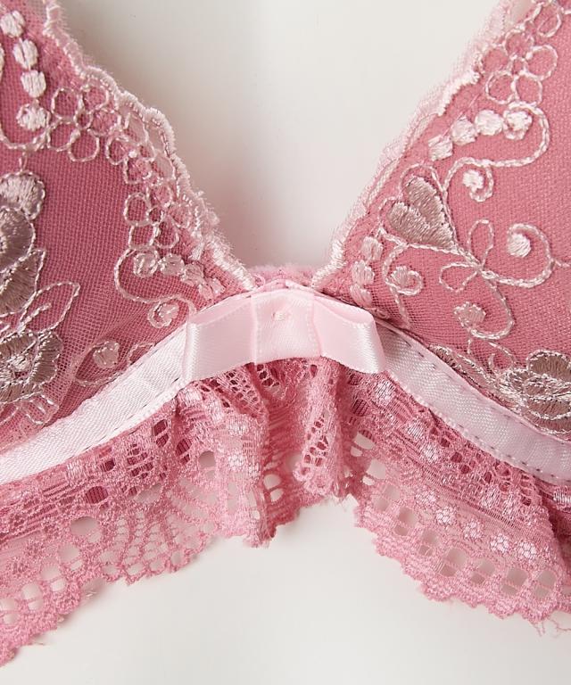 ローズ刺繍×カップに沿ったフリルがロマンティックなブラセット