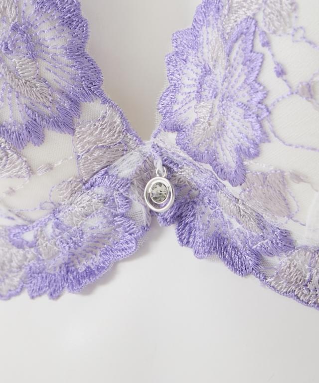 花柄をあしらった刺繍レースが胸元を華やかに彩るフルカップ風ブラセット