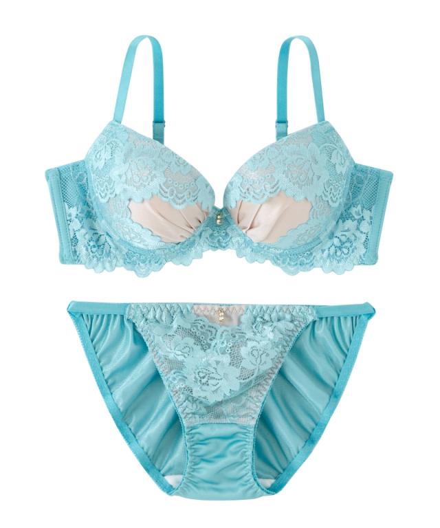 カラーレースが映えるブラ&ショーツセット