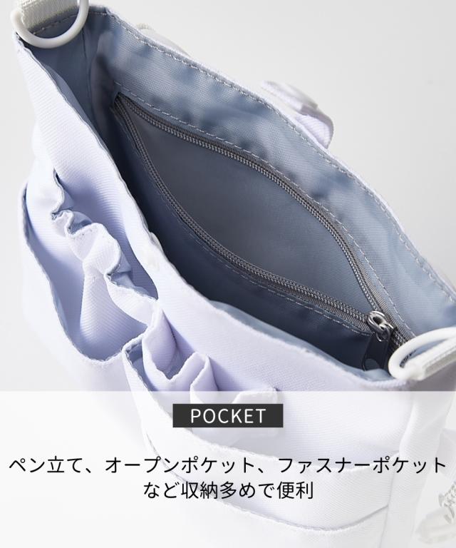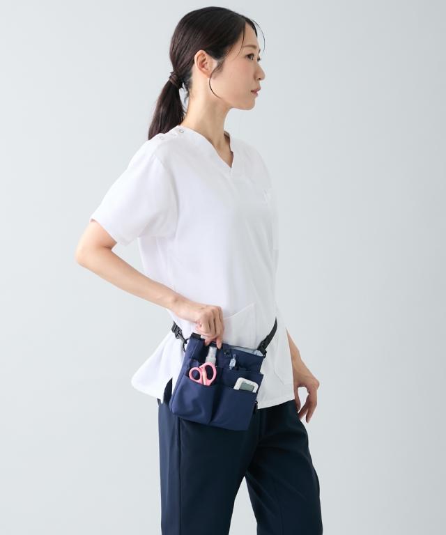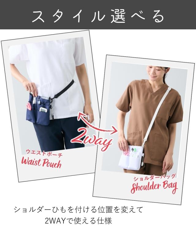 制服にポケットがなかったり、お仕事用品を持ち歩きたいけどそこまでかさばりたくない方にピッタリのコンパクトなバッグ。ショルダーバッグとして、肩ひもを付け替えてウェストポーチとして、お仕事シーンや用途に応じて使い分けが可能です。