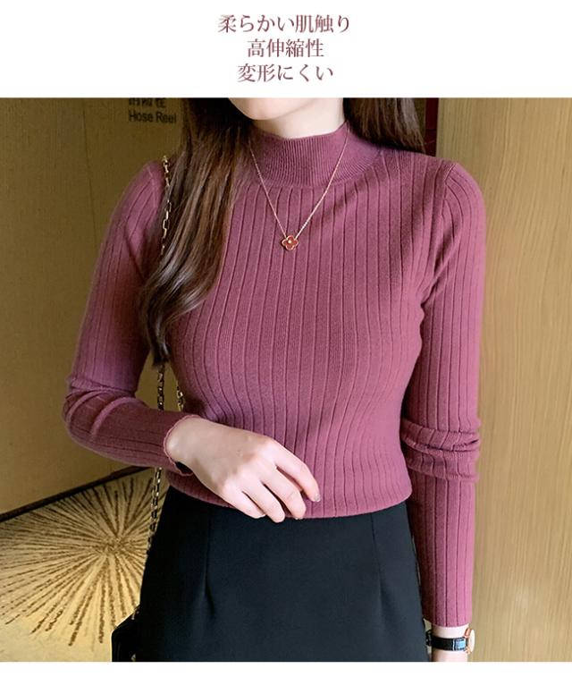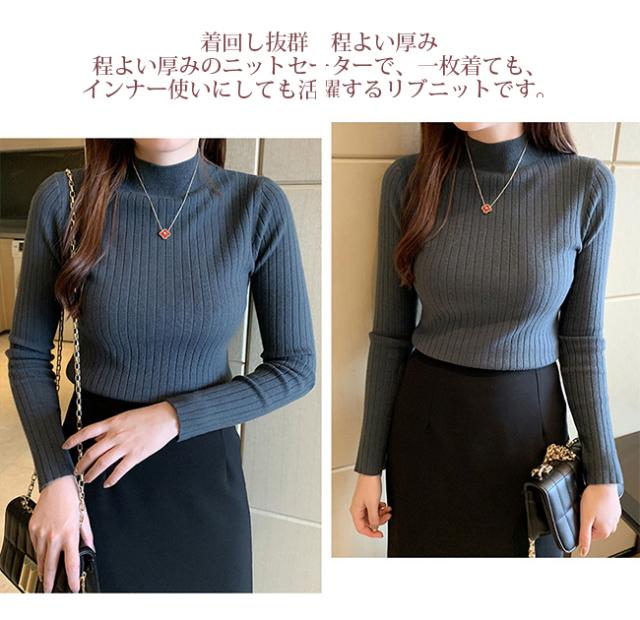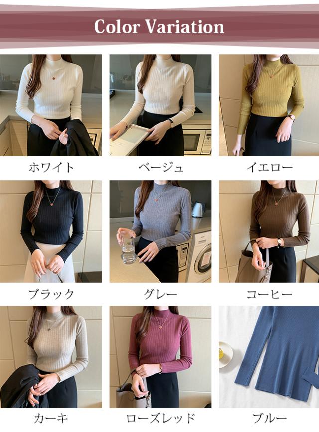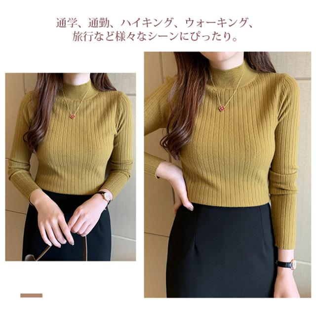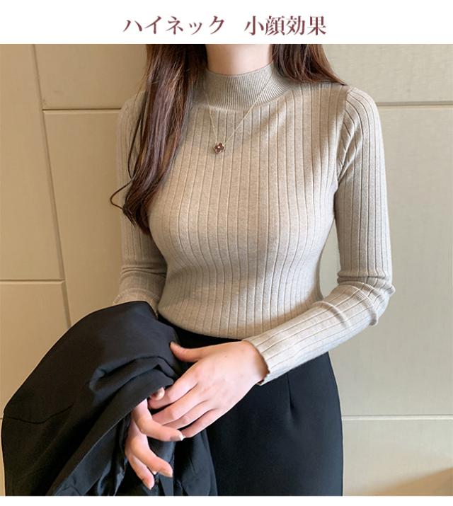 ニットセーター レディース 秋冬 ハイネック 重ね着 着回し力 ニットソー カットソー トップス タートルネック ニット 高伸縮 柔らかい 薄手 無地 長袖 縦リブ 着痩せ 小顔 カジュアル シンプル 春秋冬 6色