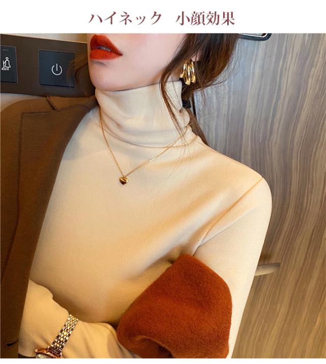 両面起毛ハイネックプルオーバー カットソー ハイネック レディーストップス 保温効果 長袖 秋冬 シルキータッチ タイトシルエット ピッタリ 柔らかい 伸縮 ストレッチ 重ね着 厚手 インナー