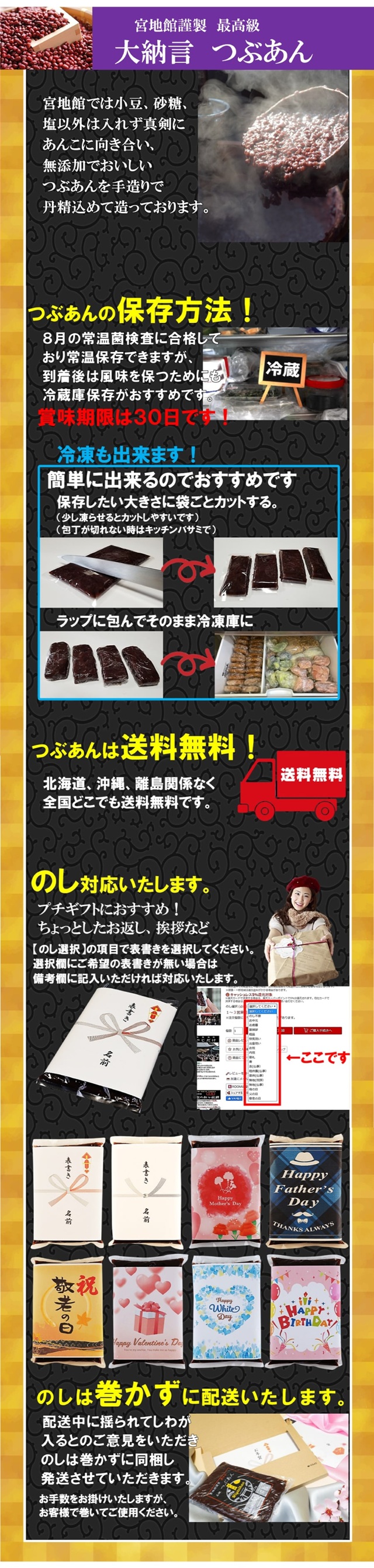 ・原材料名:大納言小豆(北海道産)、砂糖(沖縄県産)、塩(福岡県産)
