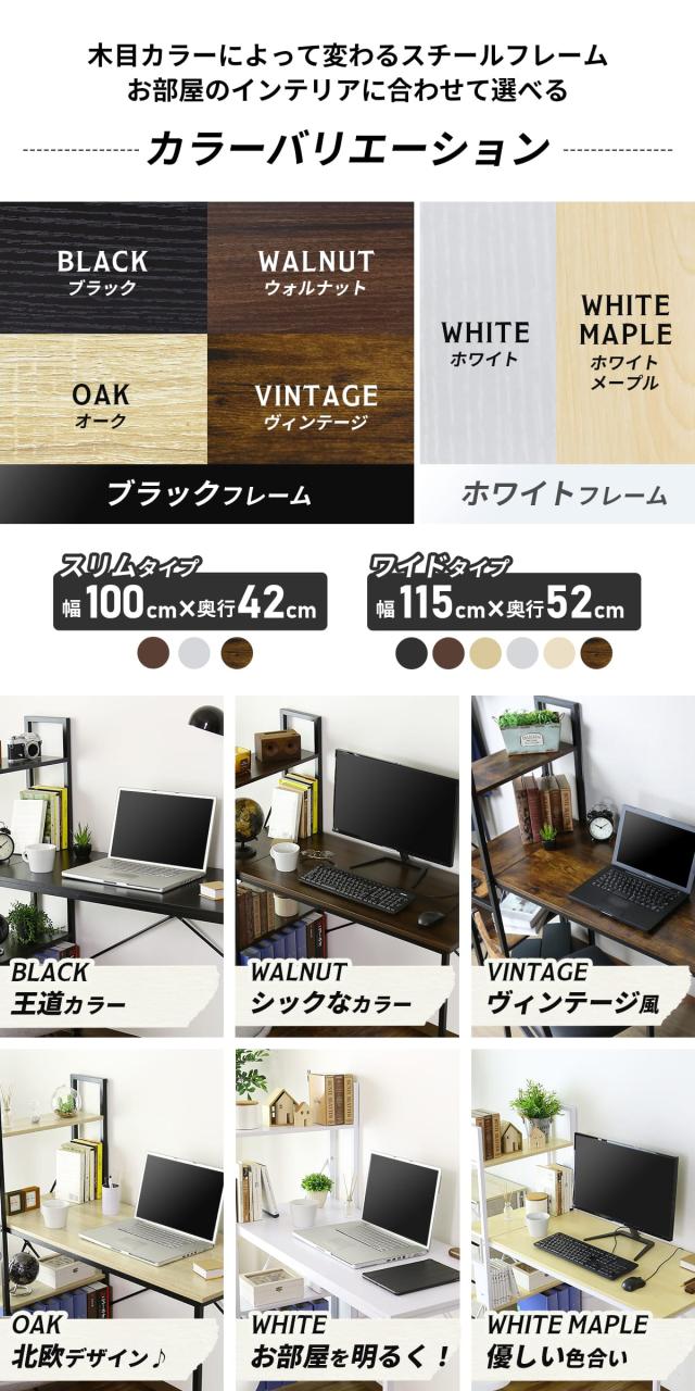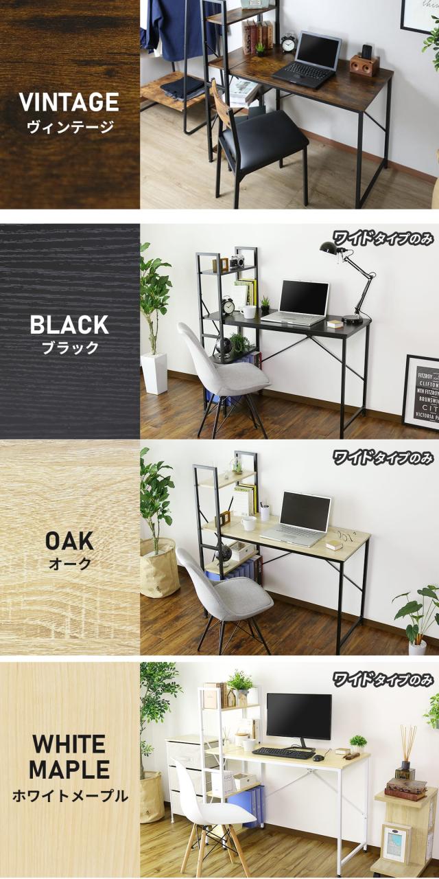 お部屋の雰囲気や用途に合わせて選べる6色のカラーバリエーションをご用意。さらに、ワイドタイプとスリムタイプの2サイズ展開で、ワンルームからリビングまで幅広く対応。自分のライフスタイルにぴったりのデスクが見つかります。