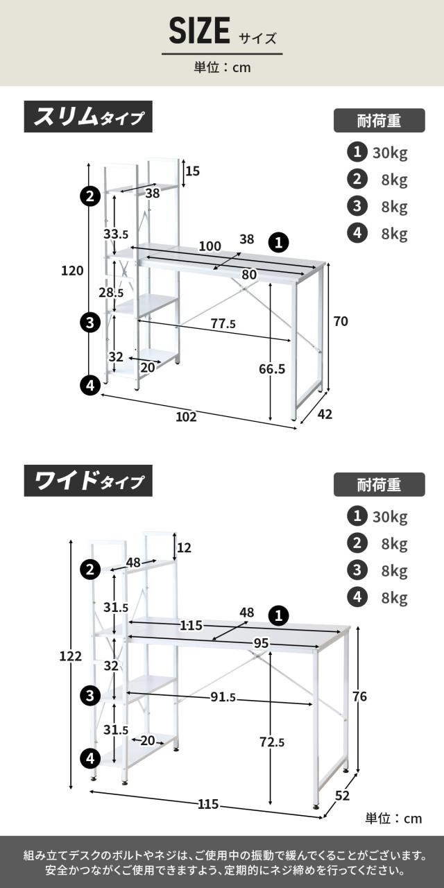 上部板:8kg 天板:30kg 中部板:8kg 下部板:8kg