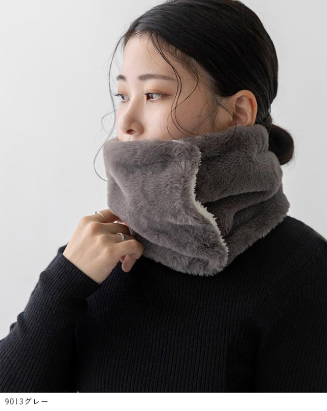 ふわふわボアで首元サッとあったか!ボタン付き ネックウォーマー
