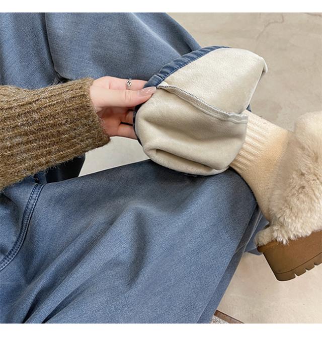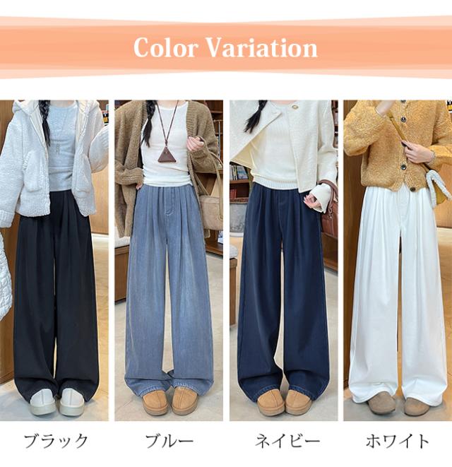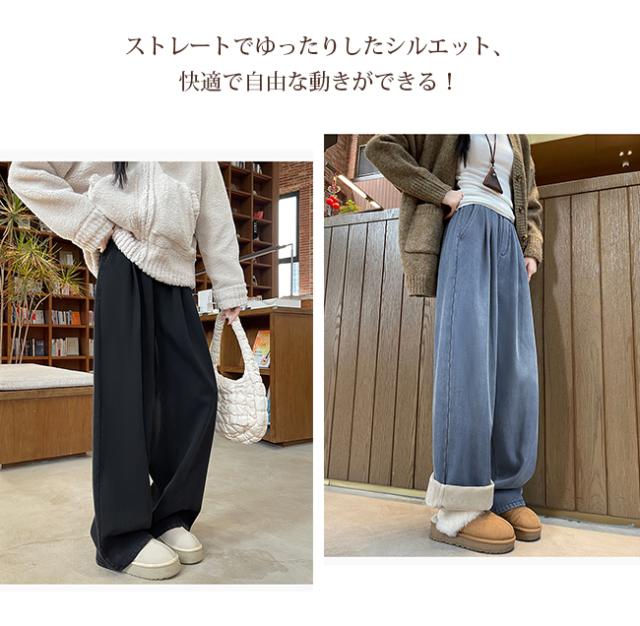 裏起毛 デニム 裏ボア ジーンズ ポケット付き パンツ デニムパンツ レディース ワイドパンツ ワイド 体型カバー 脚長効果 動きやすい ジーパン ボトムス ストレート ゆったり ハイウエスト ストレッチ ハイライズ 暖かい 秋 冬