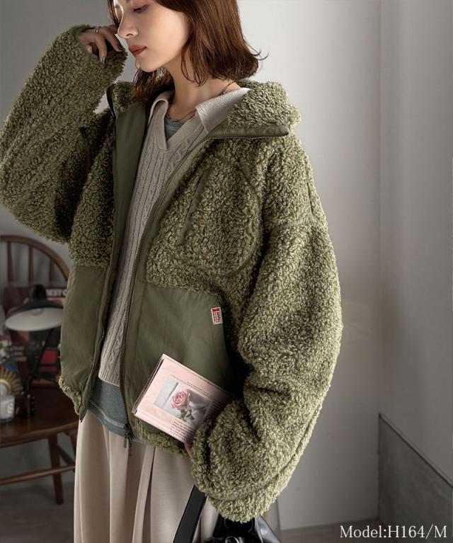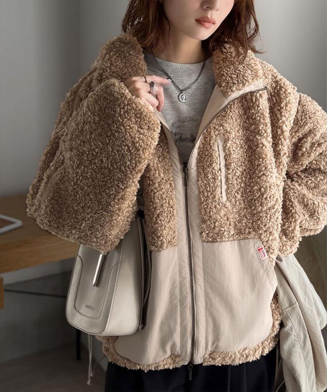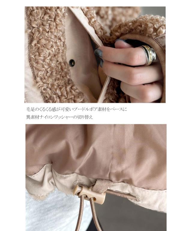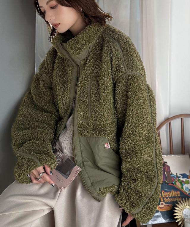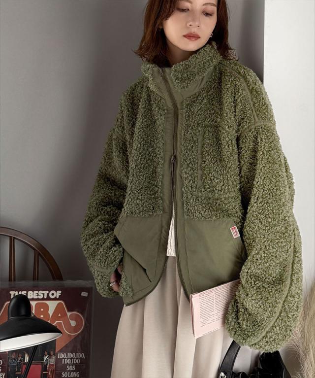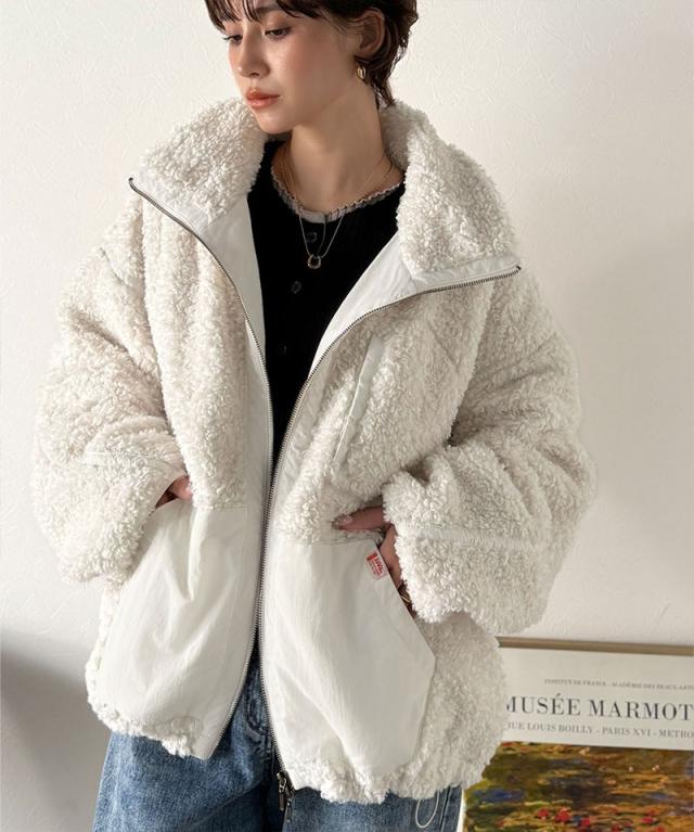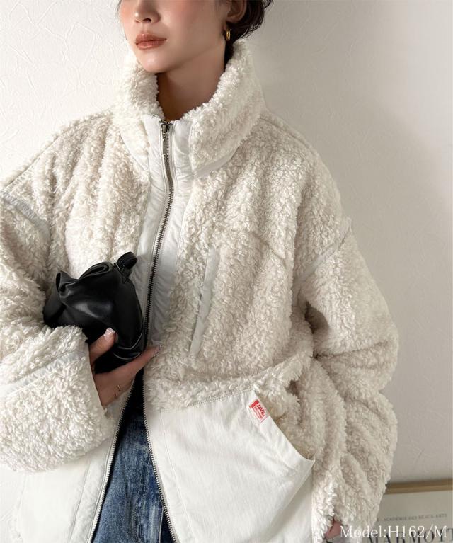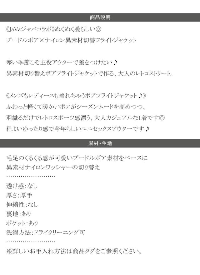クラシカルエルフ冬新作 java ジャバコラボ ボア フリースジャケット アウター ジャケット レディース ぬくぬく 愛らしい プードル ボア × ナイロン 異素材 切替 フライトJK 大きいサイズ 2025aw jv1265031