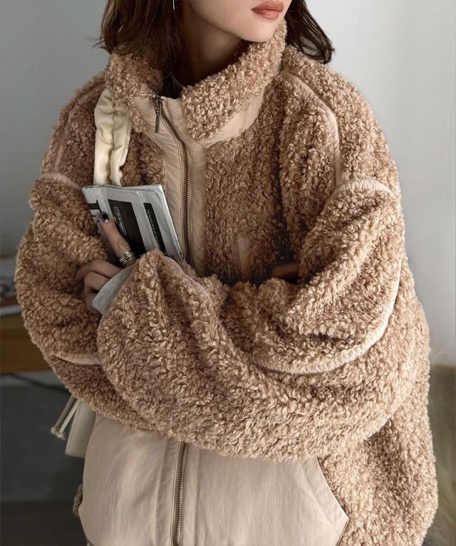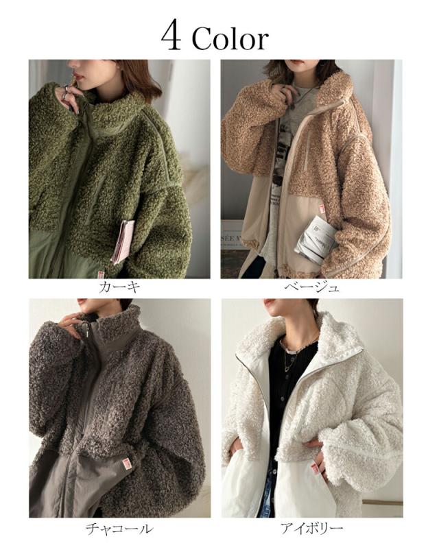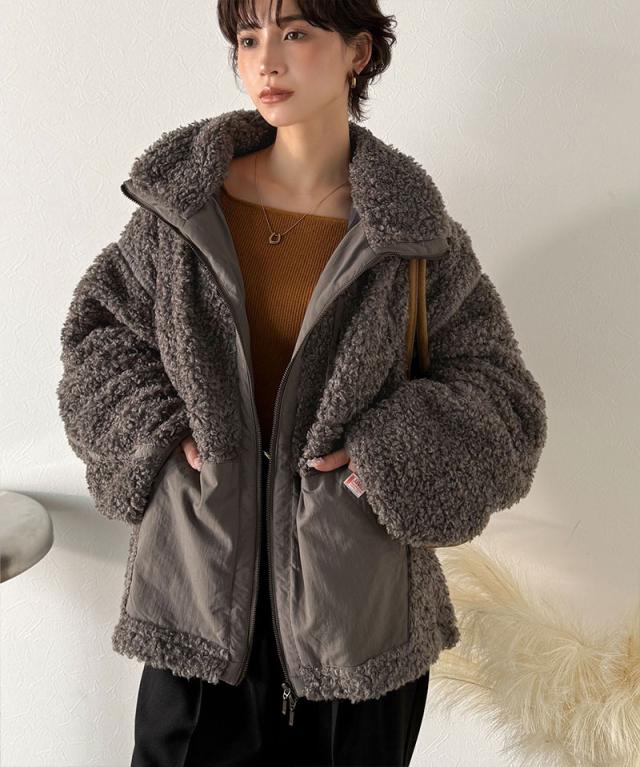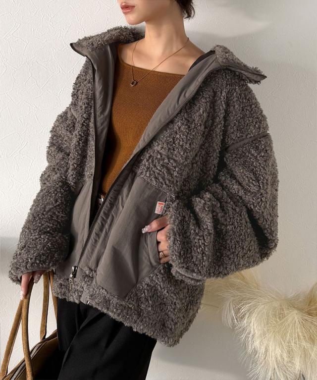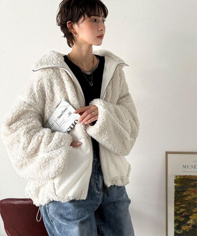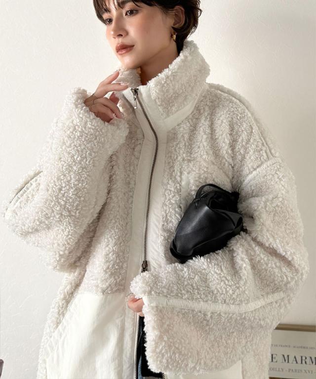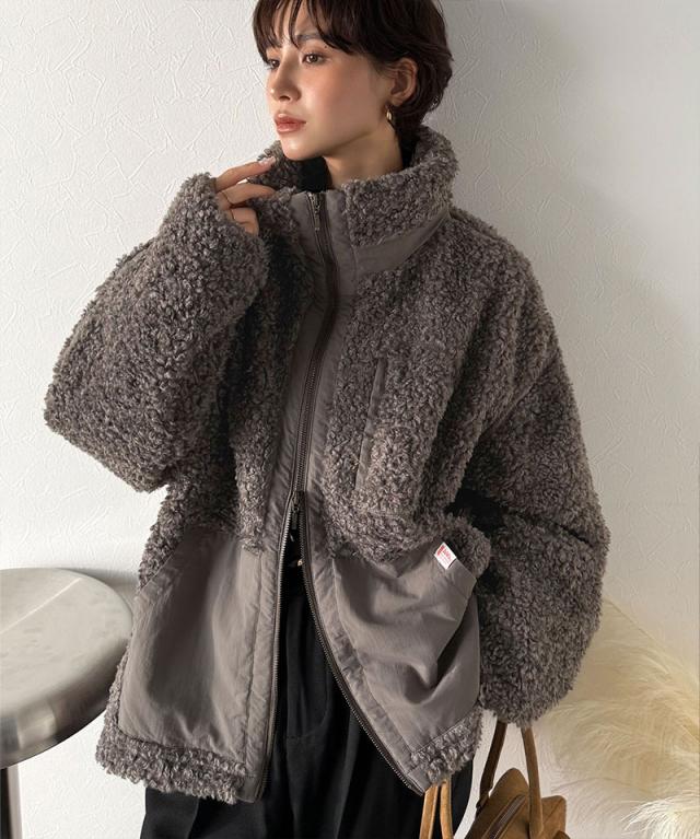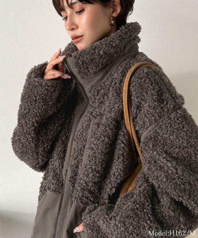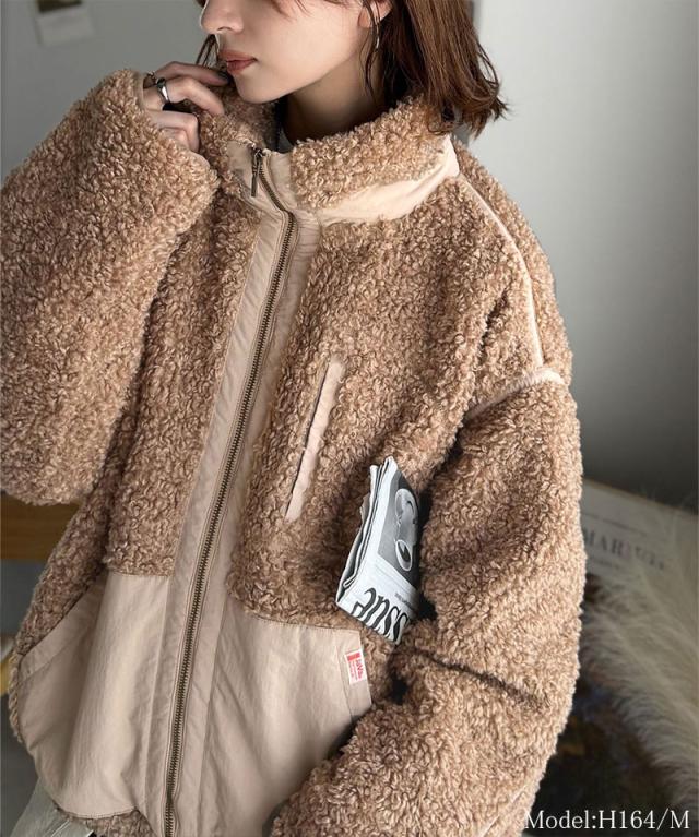 クラシカルエルフ冬新作 java ジャバコラボ ボア フリースジャケット アウター ジャケット レディース ぬくぬく 愛らしい プードル ボア × ナイロン 異素材 切替 フライトJK 大きいサイズ 2025aw jv1265031