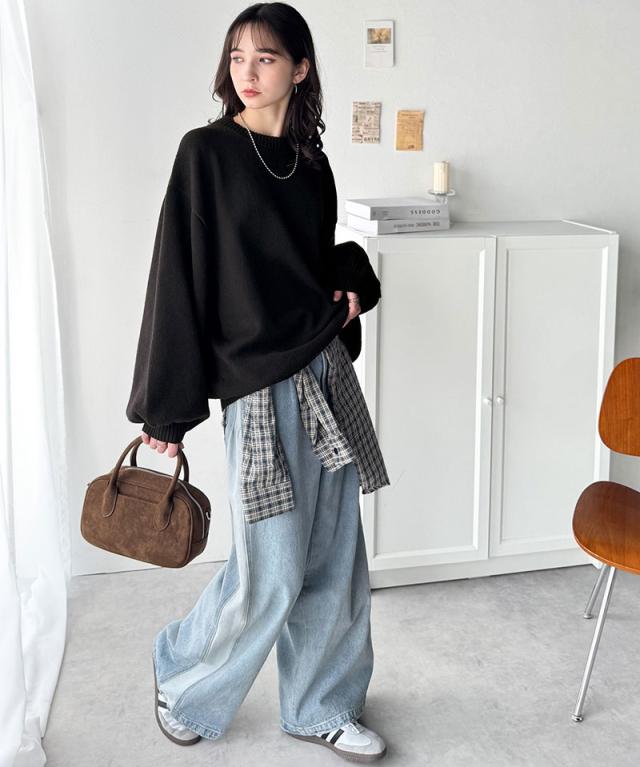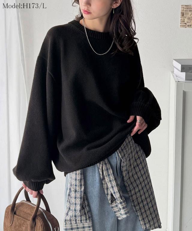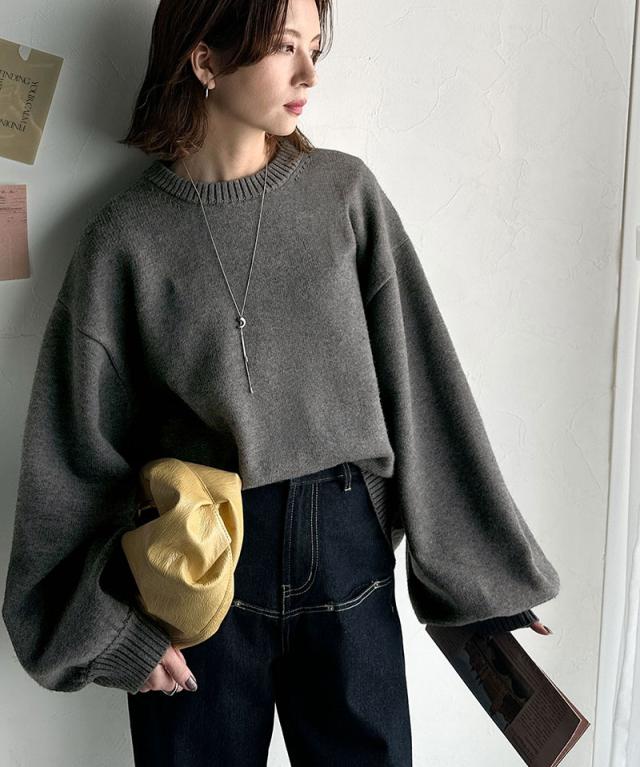 クラシカルエルフ冬新作 java ジャバコラボ ニット トップス レディース ボリュームスリーブ オーバーサイズ リラックス感 ビッグシルエット 男女兼用 ユニセックス メンズ カジュアル ゆるっと シンプル ストレッチ 天竺編み 大きいサイズ 2025aw jv1350007