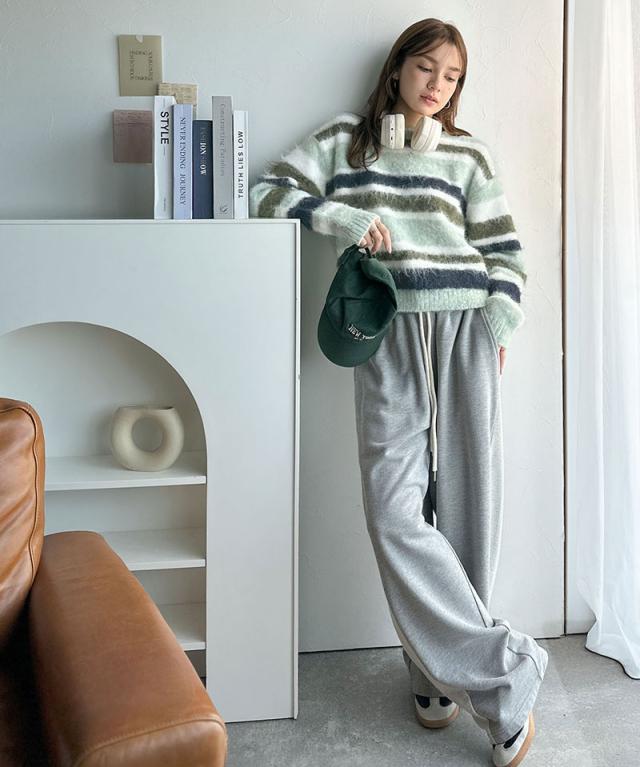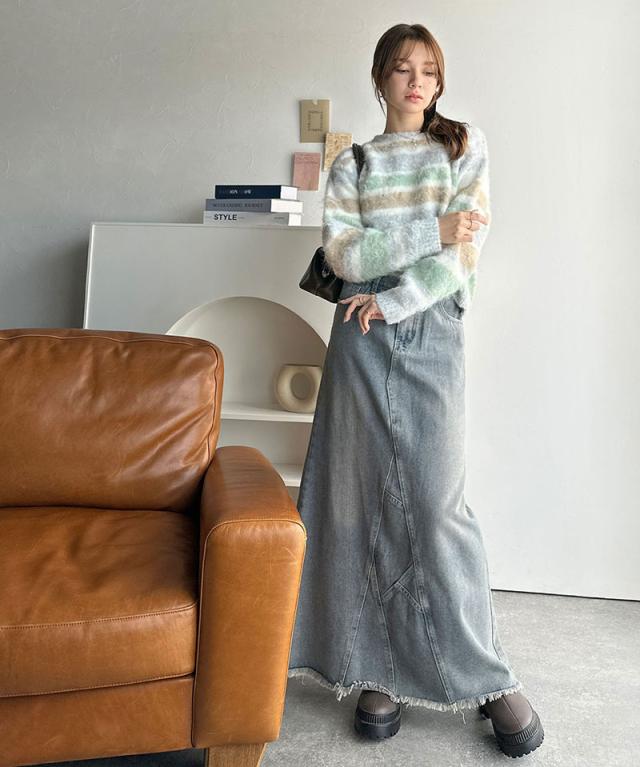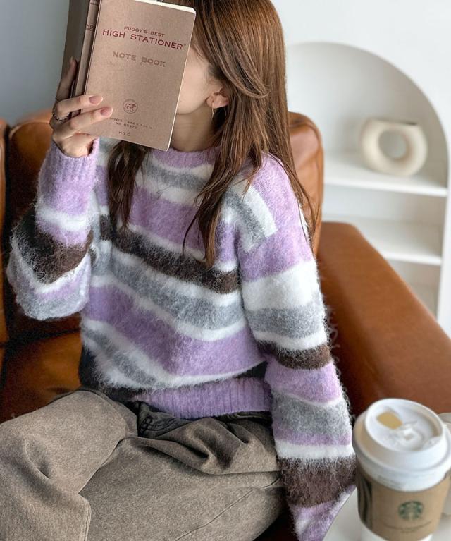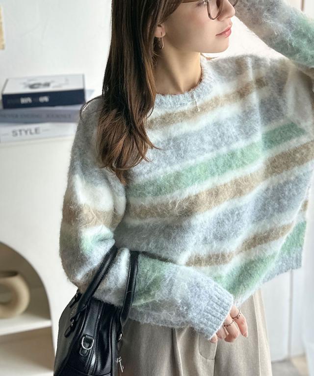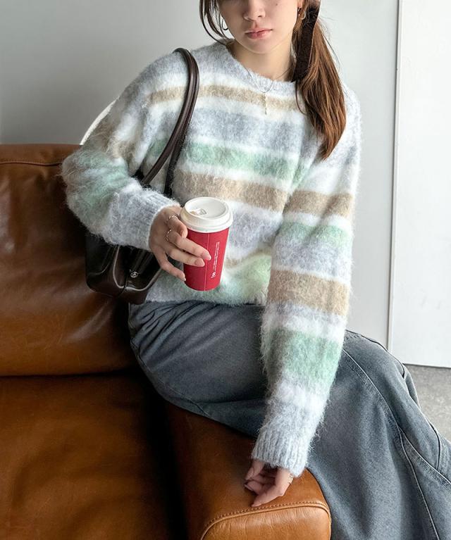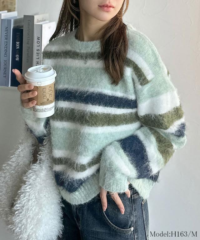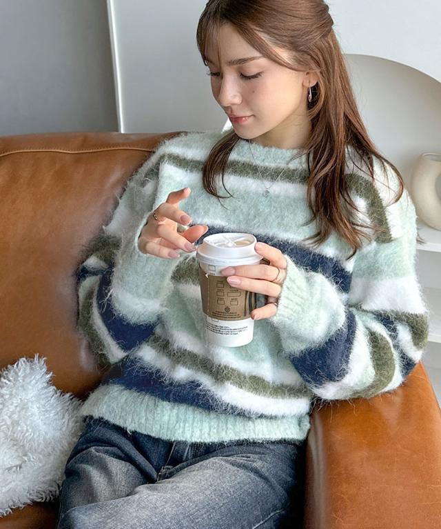 クラシカルエルフ冬新作 mily bilet ニット トップス レディース マルチボーダー シャギー プルオーバー 華やか ミックスカラー ふんわり ストレッチ糸 ゆったり感 リラックス 起毛加工 主役級ニット 可愛い カジュアル 大きいサイズ 2025aw mi1329040