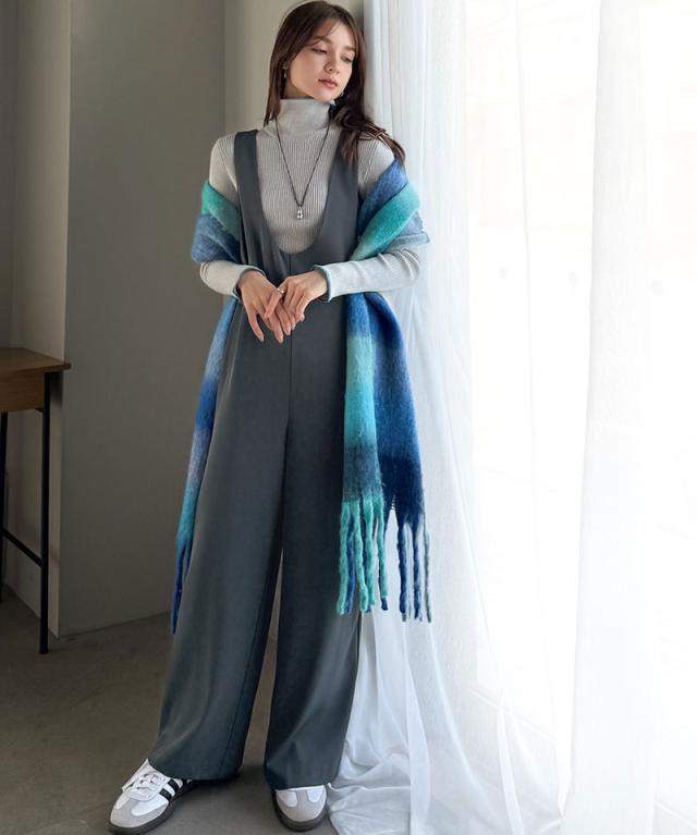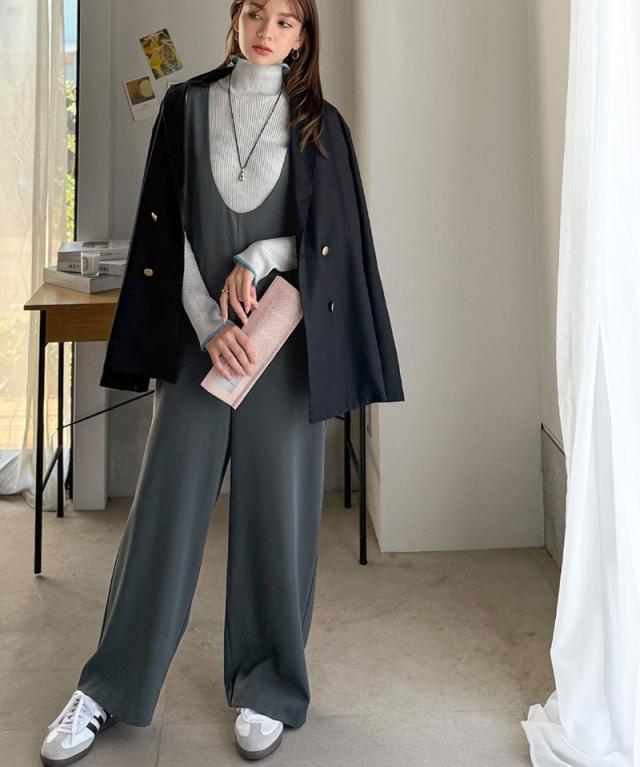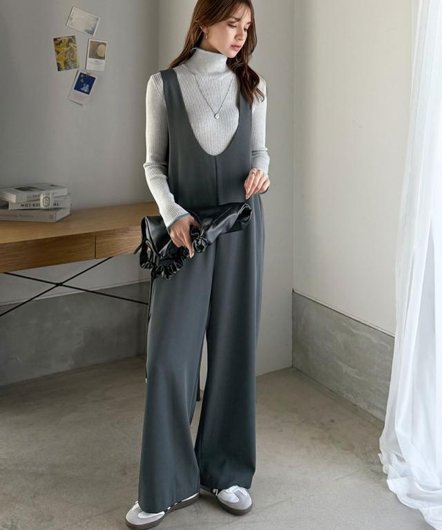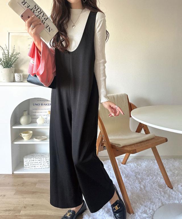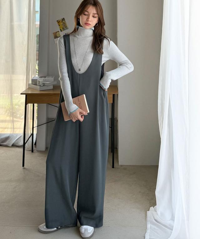 クラシカルエルフ冬新作 オールインワン サロペット レディース つなぎ パンツ ラクチン お洒落 Uネック スタイルアップ ハイウエスト トレンド 脚長 効果 カジュアル フェミニン カジュアル 万能 ストレッチ 大きいサイズ 2025aw ce1025005
