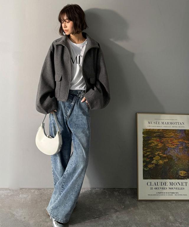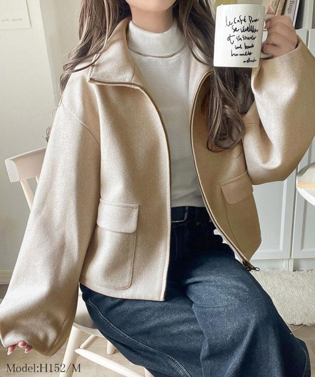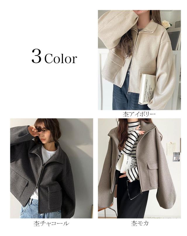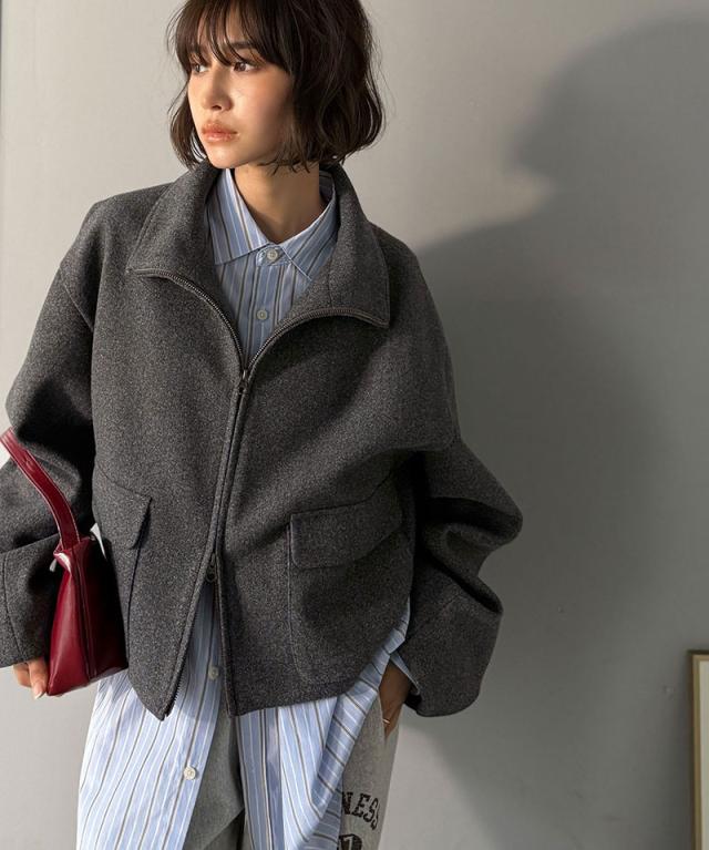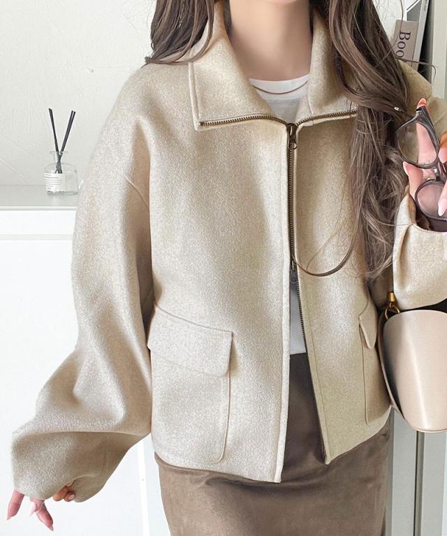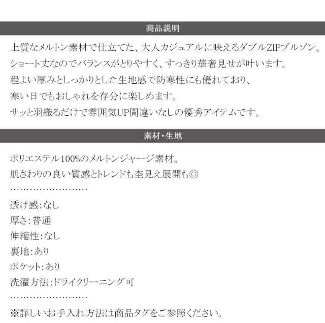 クラシカルエルフ冬新作 アウター ブルゾン レディース 秋冬 ショート丈 ダブルジップ シンプル 上品 カジュアル メルトン素材 ダブルZIP 羽織る 防寒 すっきりシルエット 華奢見せ 映える 程よい厚み 大きいサイズ 2025aw ce1265009