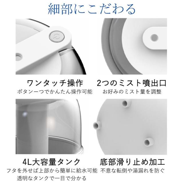 加湿器 超音波式 4L大容量 省エネ 加湿機 卓上 乾燥対策 上部給水 空気清浄機 LEDライト オフィス 家庭用 鼻詰まり 静音 除菌 アロマ対応