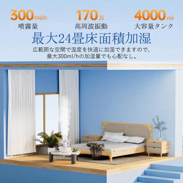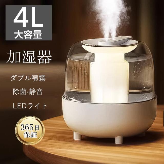 加湿器 最新発売 超音波式 4L大容量 省エネ 加湿機 卓上 乾燥対策 上部給水 空気清浄機 LEDライト オフィス 限定セール 家庭用 鼻詰まり 静音 除菌 アロマ対応