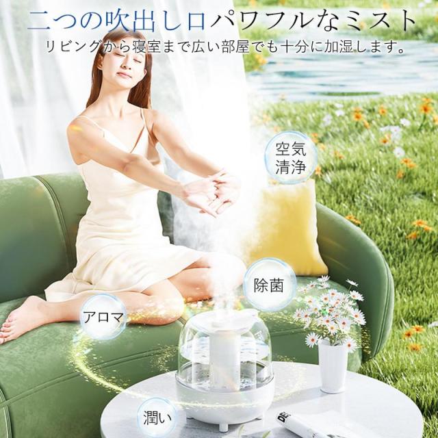 【キーワード】超音波式 加湿器 大容量加湿器 静音 お手入れ簡単 手軽 乾燥/花粉対策 置き場所 床置き 事務所 オフィス 部屋 学校 幼稚園 家庭用 会社 乾燥対策 お肌 保湿 効果 空焚き防止 自動OFF アロマ対応 乾燥肌 不眠 鼻詰まり ミスト濡れない 空気清浄機 一人暮らし おすすめ おしゃれ 人気 省エネ 秋冬用 アロマディフューザー 寝室 シーリングライト スチーム式 小型 ミニ 除菌 USB充電式 上部給水式 ダブルノズル 加湿機 卓上