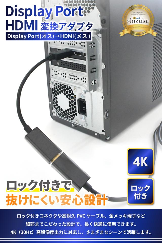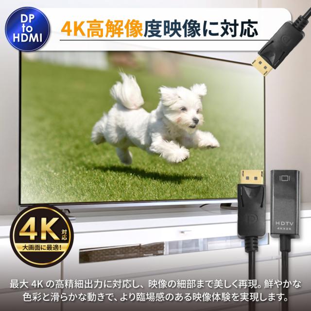 DisplayPort to HDMI 変換アダプタ HDMI変換 DP ディスプレイポート アダプター HDMI 高画質 hdmiケーブル 変換ケーブル Windows Mac パソコン ノートPC 軽量 テレビ 接続 モニター ミラーリング リモートワーク 4K 軽量 小型 コンパクト シズカウィル