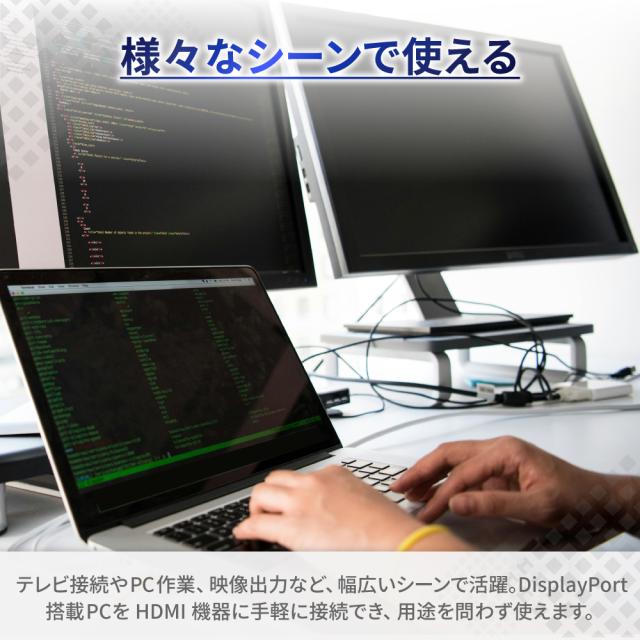 変換アダプタ アダプタ 変換器 変換ケーブル DisplayPort HDMI hdmi DP ディスプレイポート テレビ 接続 ノートパソコン PC Apple MacBook Mac windows TV モニター ディスプレイ ゲーミングモニター TV プロジェクター 取り付け簡単 差し込むだけ 薄型 軽量 コンパクト デザイン 持ち運び 動画 映像 コード 投影 出力ケーブル ミラーリング データ転送 在宅ワーク テレワーク zoom 遠隔授業 テレビ会議 リモートワーク 大画面 オンライン飲み会 リモート授業 おしゃれ オシャレ