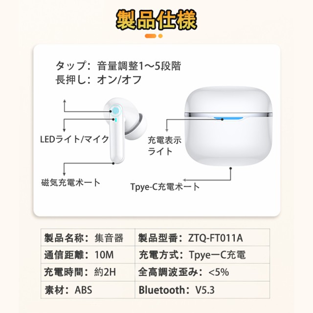 集音器 高齢者 イヤホン型 ワイヤレス 補聴器 口コミ 使いやすい 小型 デジタル両耳 片耳 ハウリングなし抑制 軽量 USB充電式 Bluetooth機能搭載 操作簡単 両親 高齢者用 おすすめ 敬老の日 家族プレゼント