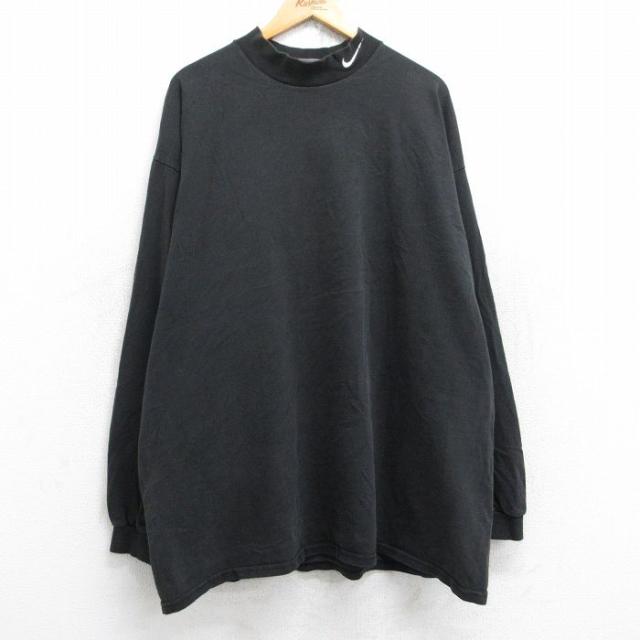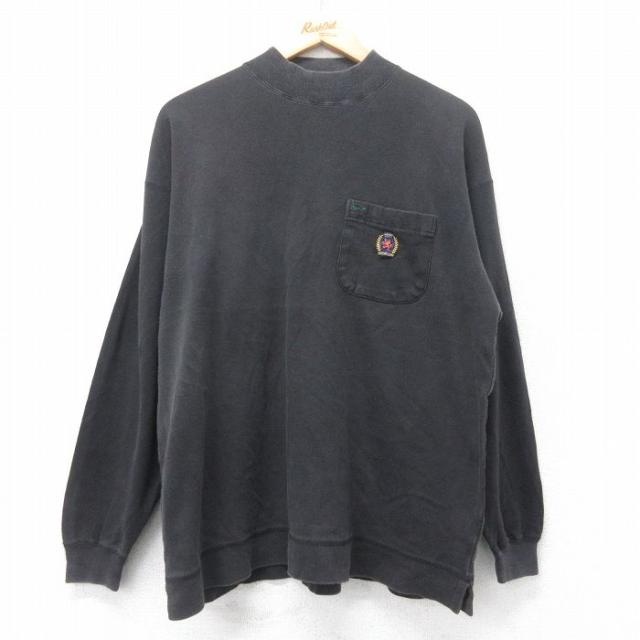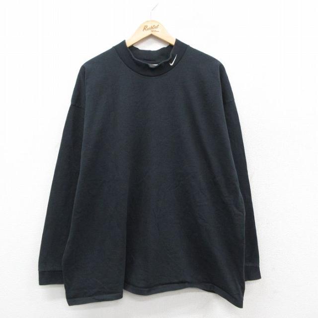 【商品名】 XL★古着 ニューバランス 長袖 ビンテージ Tシャツ メンズ 90年代 90s ワンポイントロゴ モックネック ハイネック 黒