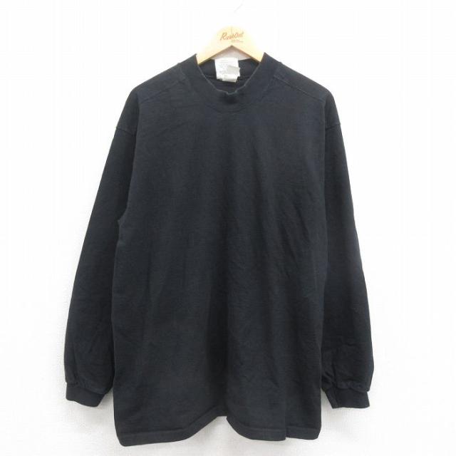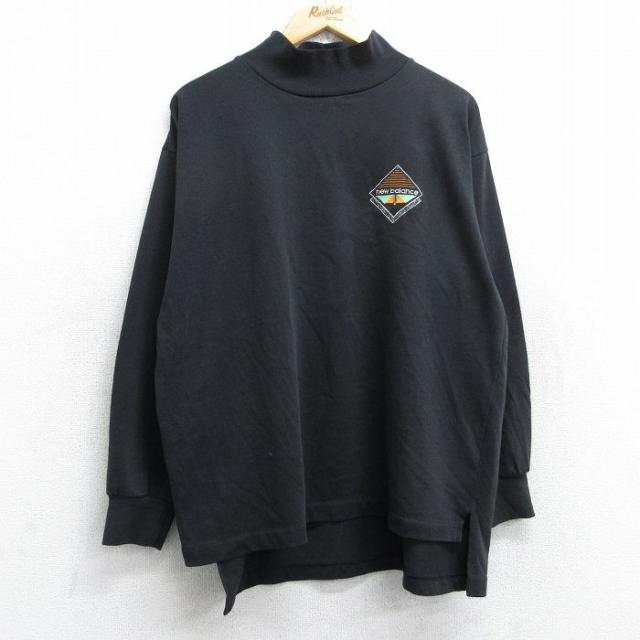 古着 ニューバランス 長袖 ビンテージ Tシャツ メンズ 90年代 90s ワンポイントロゴ モックネック ハイネック 黒 ブラック XL 中古 古着