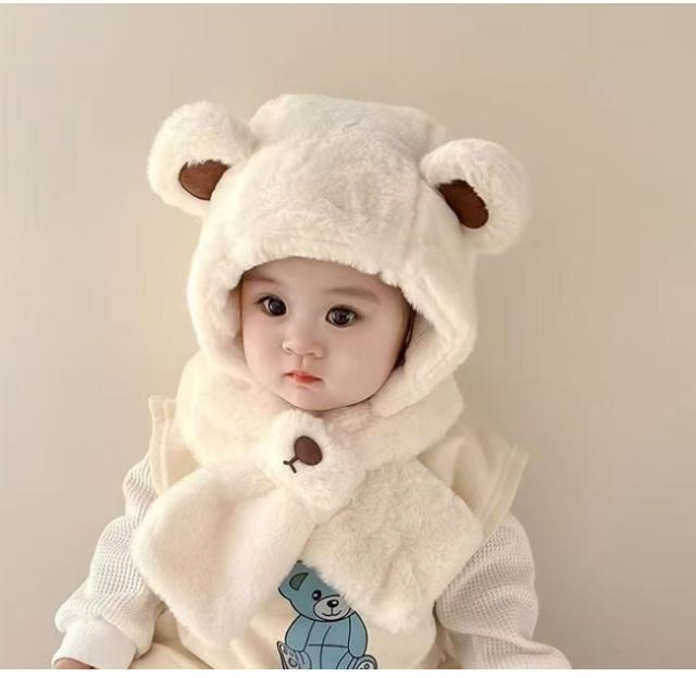 【クーポン配布中!】 帽子 マフラー ベビー キッズ 赤ちゃん 防寒 男の子 女の子 くま耳 もこもこ マフラー帽子 フェイクファー かわいい おしゃれ 秋 冬 秋冬 帽子 あったか ギフト可愛い