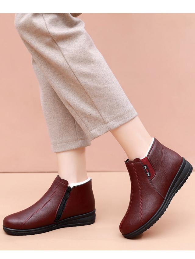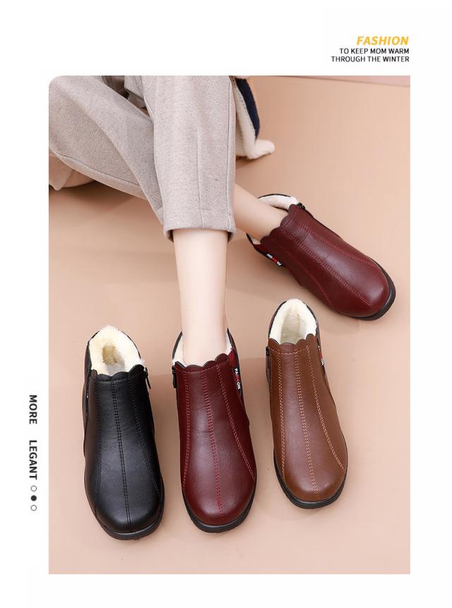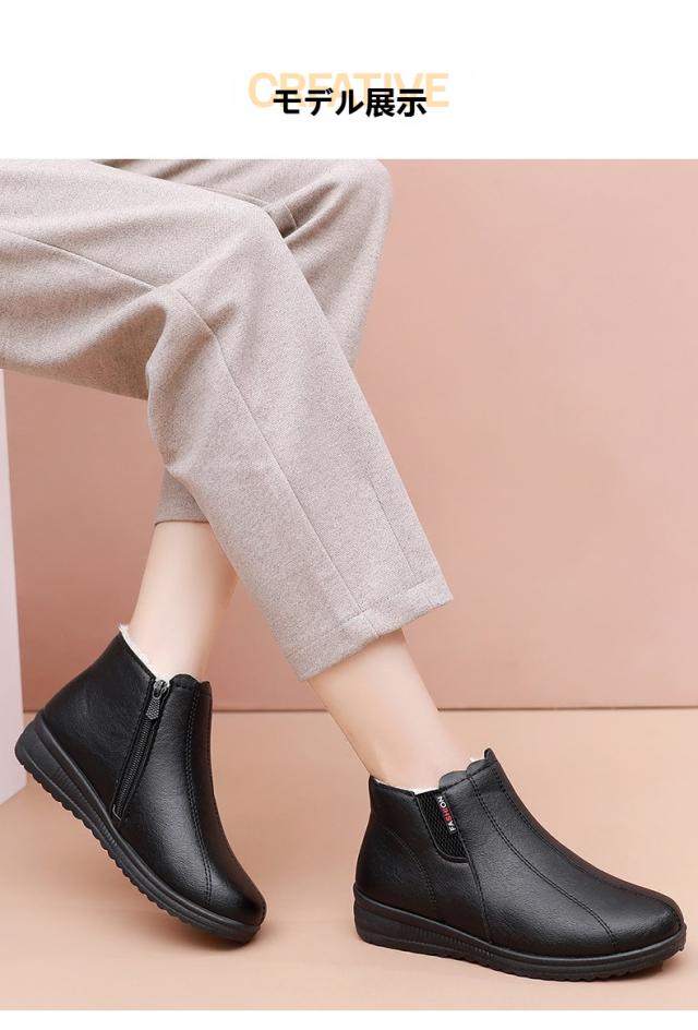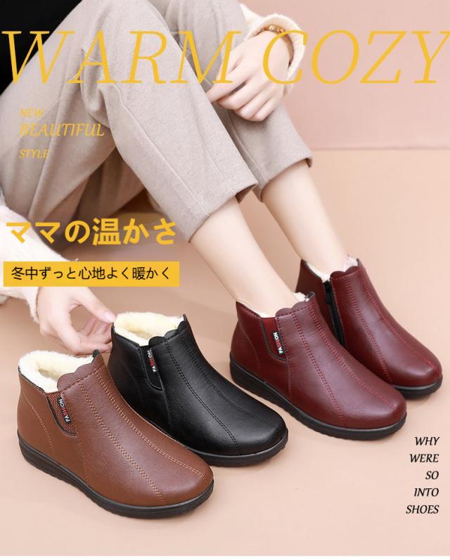ママシューズ レディース 冬用 裏起毛 保温 防滑 ソフト底 ショートブーツ シニア靴 中高年向け あったかシューズ