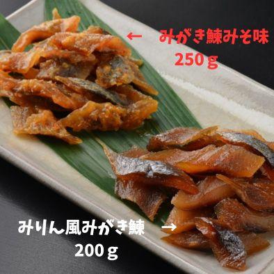 昔から変わらぬ味を守り続け、根強い人気の身欠きにしん。身欠きにしんを食べやすく、ひと口サイズにカットし、甘いみりん風の特製のたれに漬け込んだ『みりん風ひとくちみがき』200gと、たっぷりの味噌で漬け込んだ『みがき鰊のみそ合え』250gをセットでお届けします。