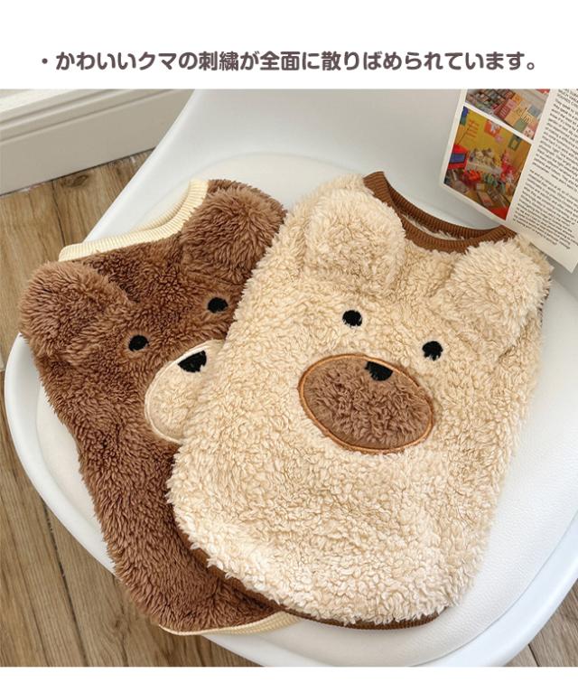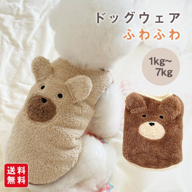 ドッグウェア ふわふわ ニット 犬 服 トップス 犬の服 あったか 秋 冬 超小型犬 タンクトップ 袖なし 小型犬 中型犬 猫 ペット 犬用 洋服 お散歩 くま柄 チワワ服 柴犬服 冬用ペット服 防寒