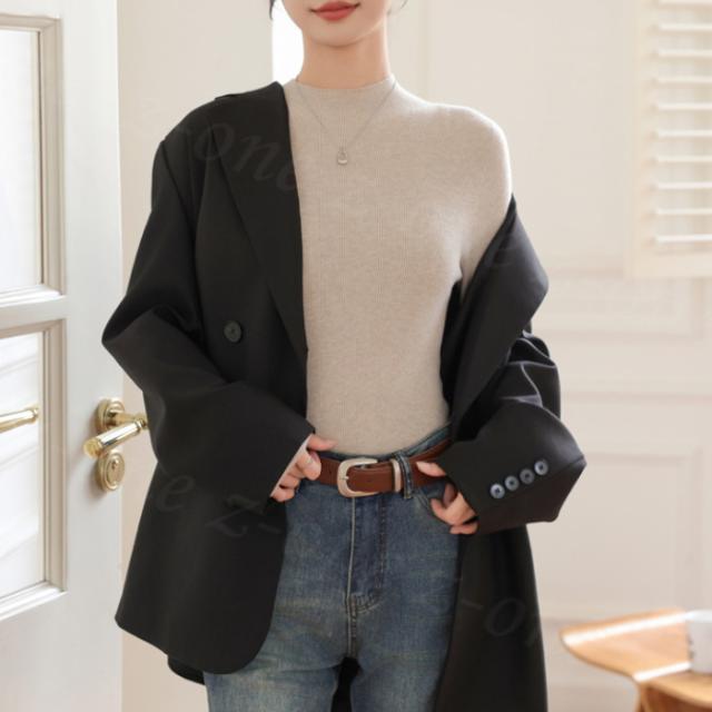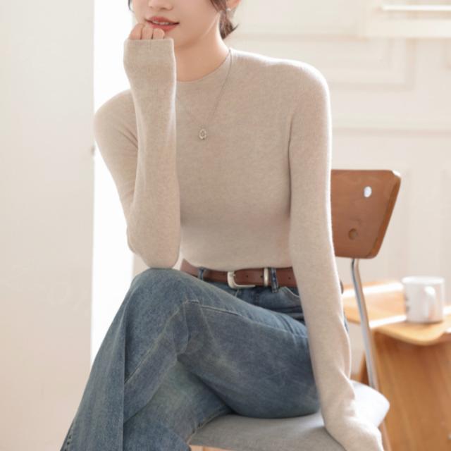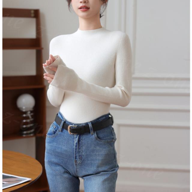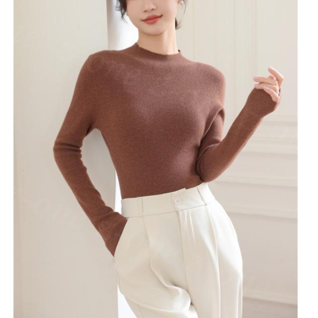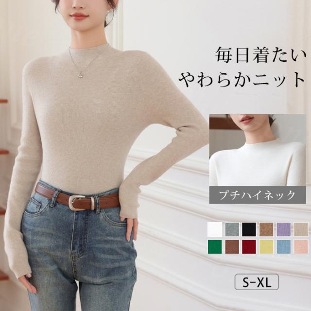 ニットトップス インナー ニット クルーネック 長袖 リブニット レディース 春秋 秋新作 薄手 無地 きれいめ 上品 オフィスカジュアル 大人 福袋 バレンタインデー