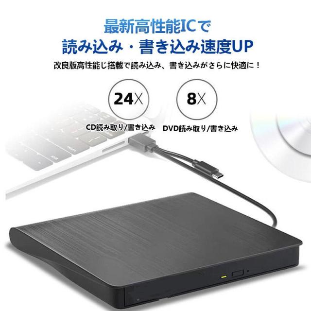 即納 DVDドライブ dvdドライブ 外付け cdドライブ USB3.0&Type-C両対応 高速データ転送 光学ドライブ windows mac 書き込み