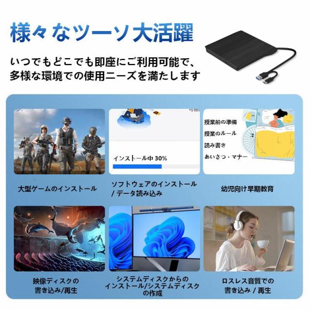 【キーワード】DVDドライブ 外付け USB 3.0 DVD CD Type-C パソコン プレーヤー 外部 光学 Windows Mac micro SD カード 録画用 レコーダー 書き込み 読み取り