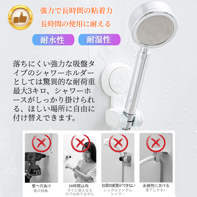 キーワード | シャワーフック 吸盤式シャワーホルダー 角度調整 浴室用ラック シャワー バスルーム シャワーフック 吸盤 強力 シャワーヘッド フック 防水 ベアリング 3kg 取り外し可能 壁掛け 取り外し可能 穴あけ不要 壁用 壁掛け 強力 シャワーフック 吸盤 シャワーヘッドホルダー 強力 シャワーホルダー シャワー シャワーラック 固定 フック 汎用 吸盤フック シャワーハンガー スライドバー ブラケット |